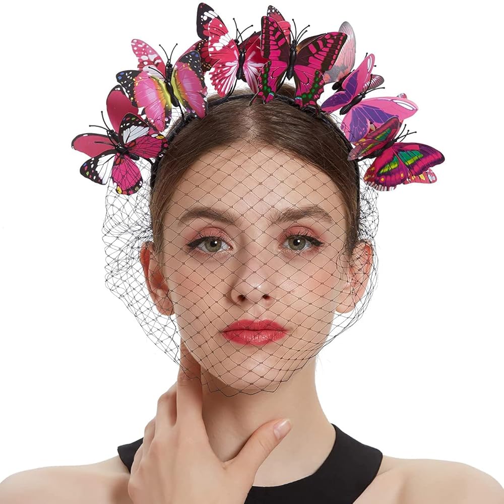 Coucoland Butterfly Fascinators Headband Veil Headband Fascinator Butterfly Headpiece for Derby Tea Party Halloween