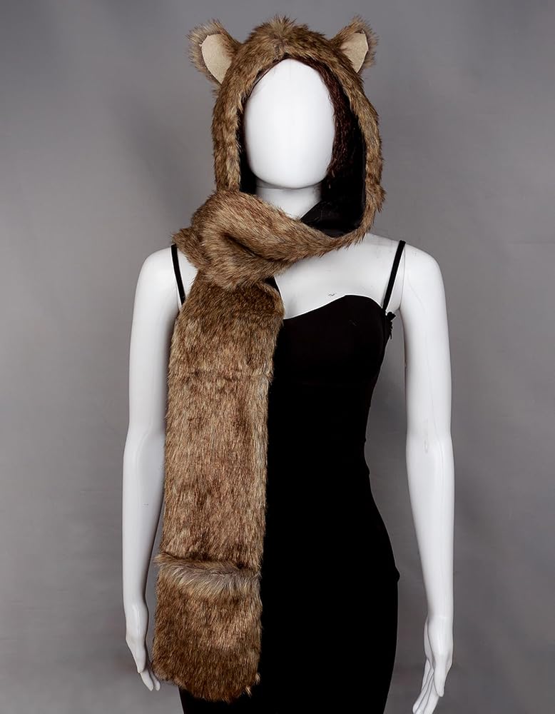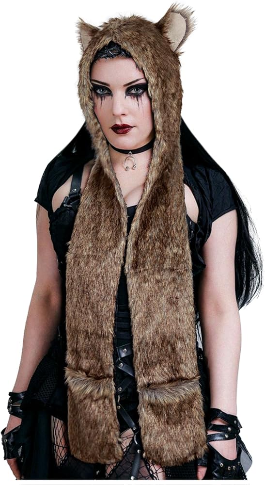 - Get ready to howl at the moon in style with this adorable fur hat hood scarf.