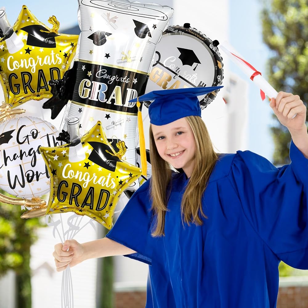 Graduation Party Ballons: You'll get 6 Pcs 'Congrats GRAD!' aluminum foil balloons, they will bring you a fantastic graduation party, and create unforgettable memories. These balloons are a great addition to your graduation party, and your carefully arranged ones will leave a deep impression on all your classmates and guests.