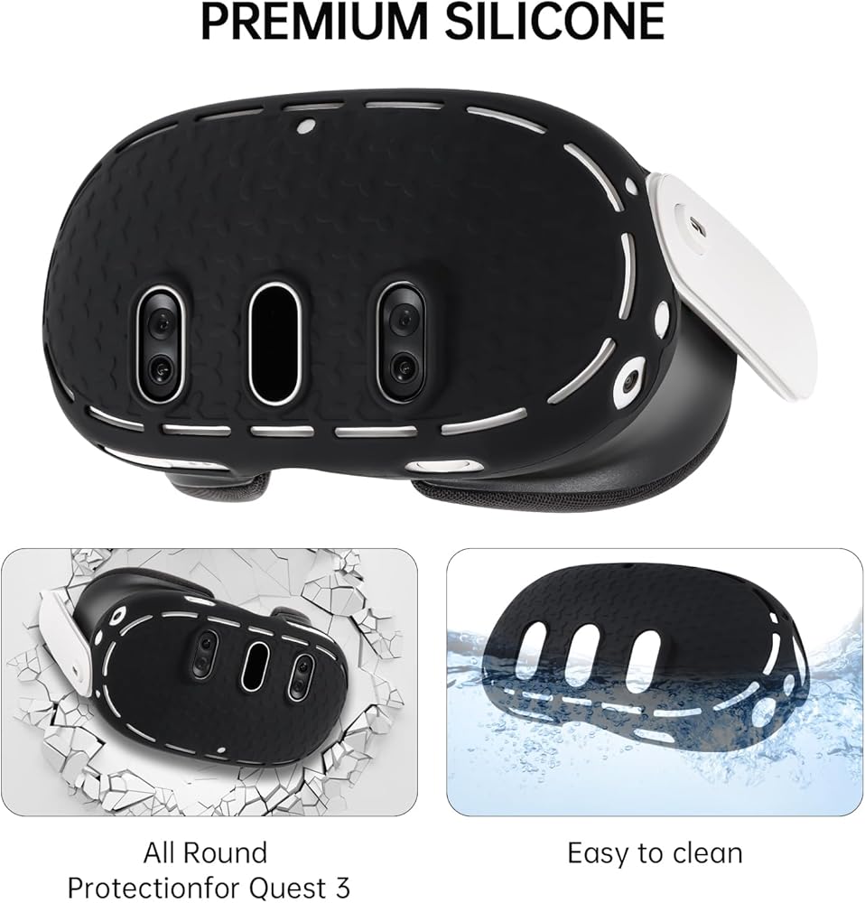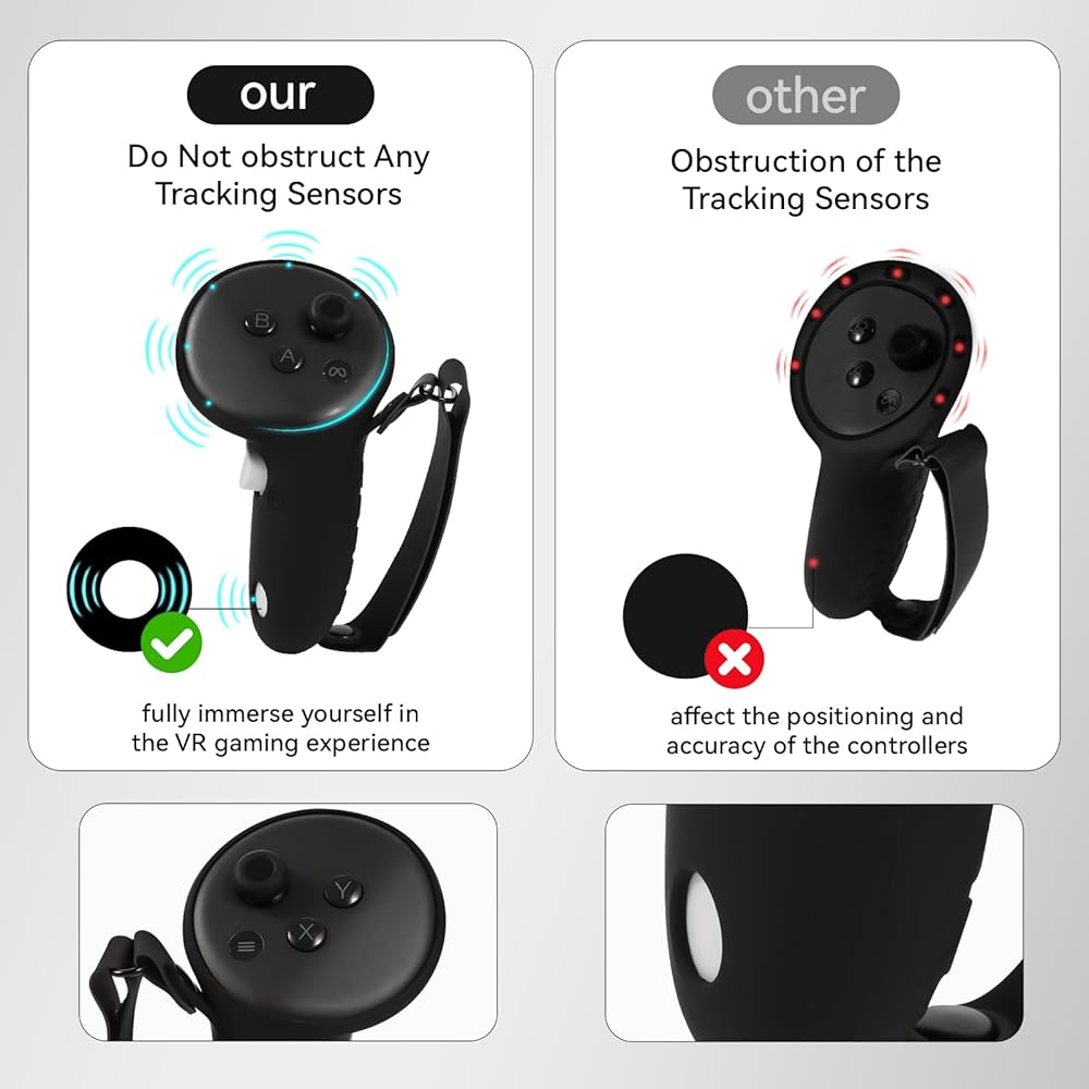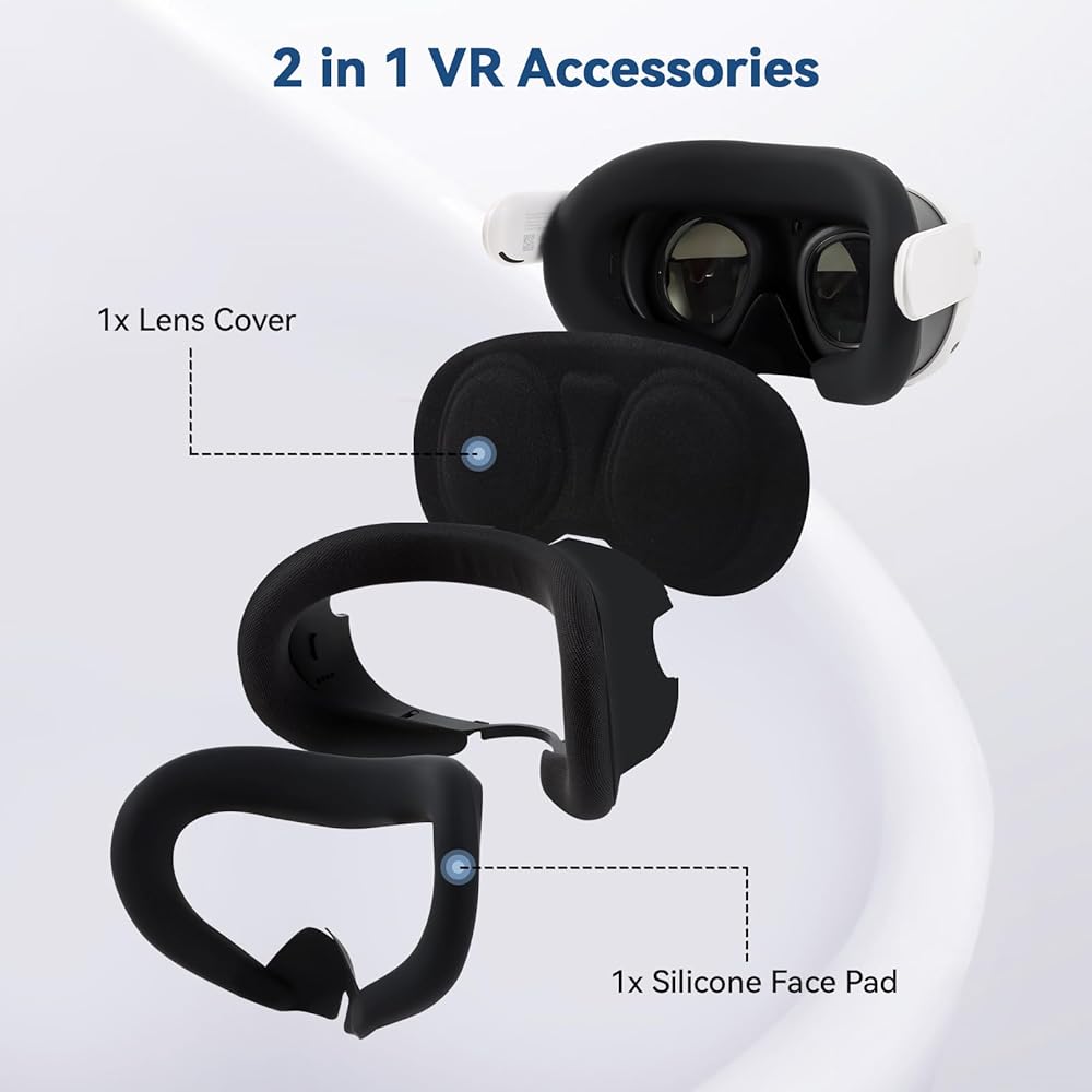 • مجموعة غطاء السيليكون: 1x غطاء وجه سيليكون VR، 1x غطاء سماعة الرأس VR، 2x غطاء مقابض وحدة التحكم، 2x غطاء عصا التحكم، 1x غطاء العدسة، توفير حماية شاملة لجهاز الواقع الافتراضي الخاص بك