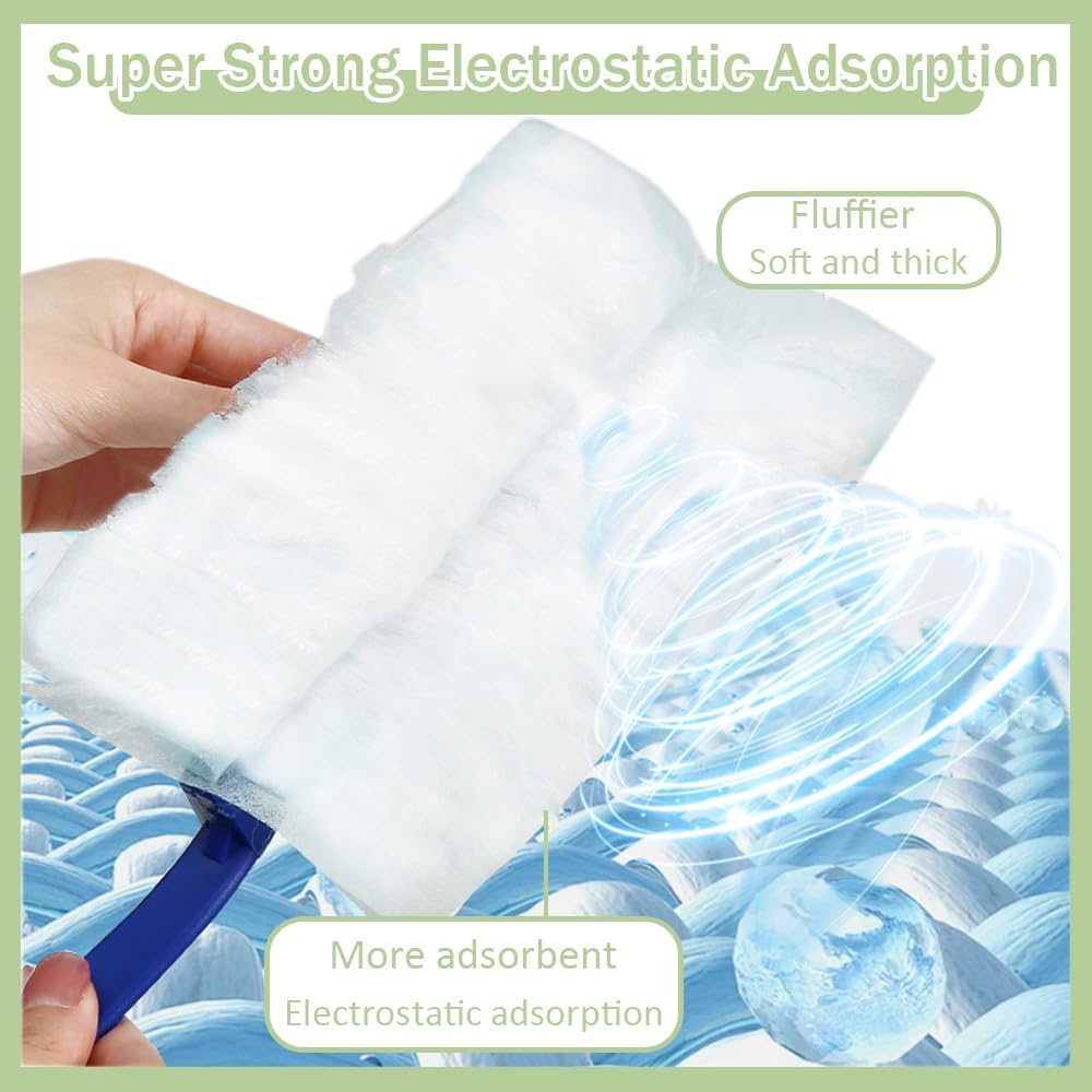 [عبوة من 30 قطعة منفضة]: رؤوس استبدال غبار الألياف الدقيقة مناسبة لغبار Swiffer. إن عبوة المنفضة هذه هي 180 درجة محاطة بألياف عالية الجودة وهي أسهل في تنظيف الغبار من غبار الريش العادي. التفاعل الكهروستاتيكي القوي للغاية يمنع الغبار من التطاير.