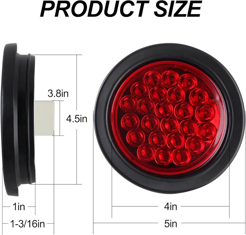 5 1/8 بوصة (13 سم) ضوء مقطورة مستدير مقاوم للماء 24 LED يقدم 3 وظائف كضوء توقف، ومصباح إشارة الانعطاف وضوء الذيل؛ تركيب مجوف مع حلقة معدنية وأسلاك التوصيل المصنوعة؛ يقبل القابس القياسي ذو 3 شوكات؛ متوافق مع أنظمة تيار مستمر 12 فولت؛
