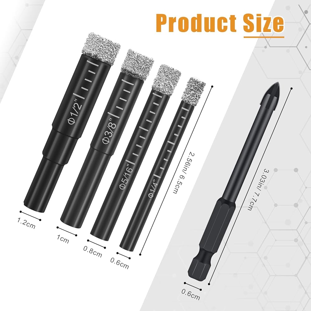 【تشمل العبوة】- تحتوي مجموعة رؤوس المثقاب الماسي على 9 قطع، قطعتين 1/2 بوصة (12 مم)، قطعتين 3/8 بوصة (10 مم)، قطعتين 5/16 بوصة (8 مم)، قطعتين 1/4 بوصة( 6 مم)، وقطعتين من الماس المستقيم السداسي؛ مزيج من الأحجام المختلفة والكمية الكافية للاستخدام والاستبدال على المدى الطويل.