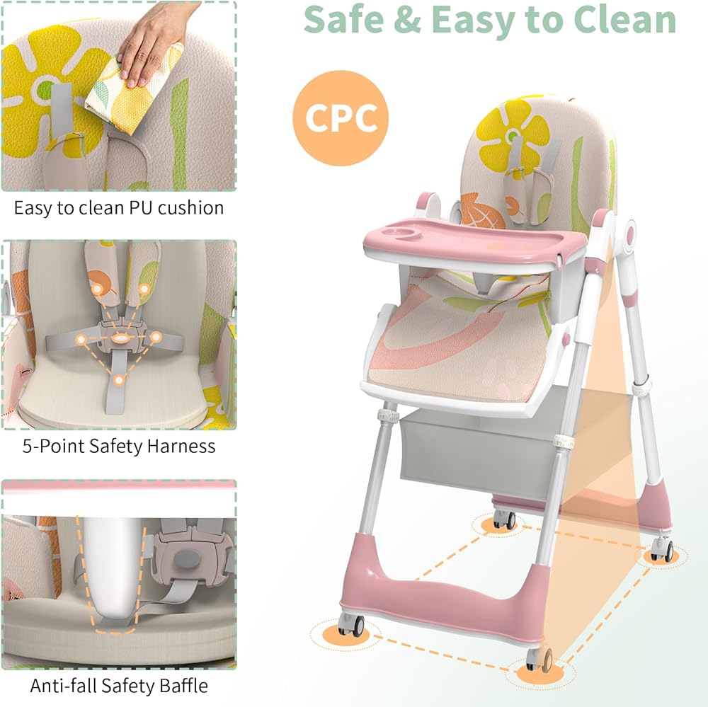 🐾【بنية آمنة ومستقرة】 يعتمد كرسي الأطفال لتناول الطعام هذا على هيكل هرمي صلب، باستخدام أنابيب فولاذية عالية الجودة، والتي يمكن أن تجعل كرسي تناول الطعام للطفل أكثر استقرارًا. وفي الوقت نفسه، يساعد حزام الأمان ذو 5 نقاط وحاجز الأمان على إصلاح طفلك و منع السقوط على الكرسي.