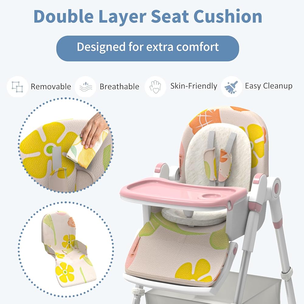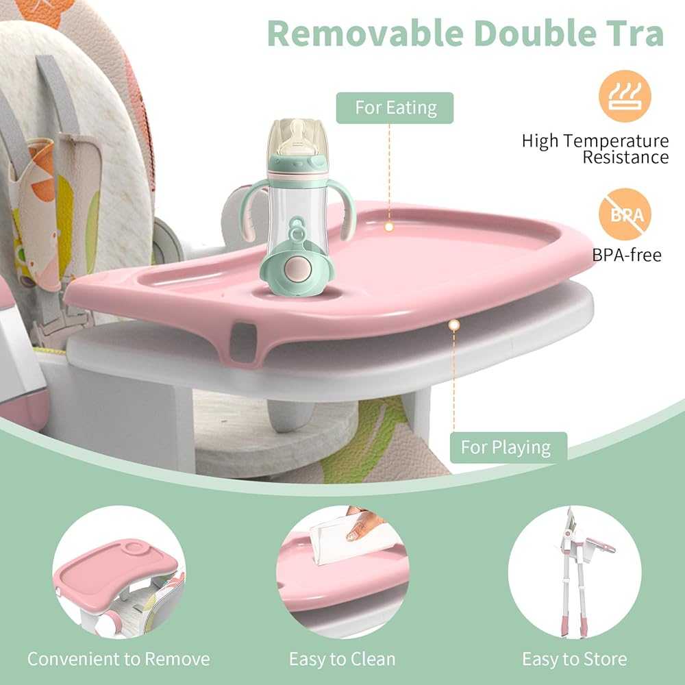 🐾【سهلة التنظيف】 وسادة كرسي تغذية الأطفال القابلة للإزالة مصنوعة من البولي يوريثان، وهي سهلة التنظيف والمسح. صينية طعام مزدوجة - يمكن تبديل الطعام العلوي واللعب السفلي وإزالتهما في أي وقت لسهولة التنظيف.
