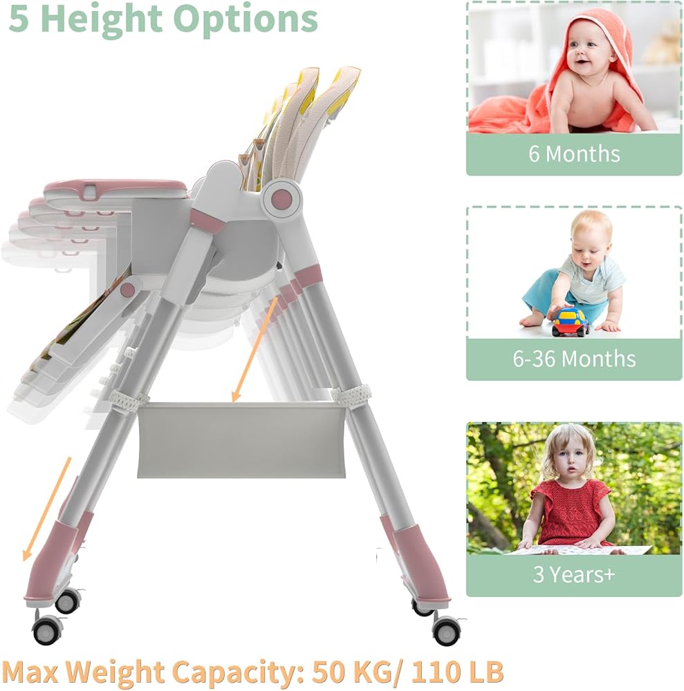 🐾【مناسب لطاولات الطعام ذات الارتفاعات المختلفة】يمكن تعديل هذا الكرسي العالي في 5 أوضاع ارتفاع للتكيف مع طاولات الطعام ذات الارتفاعات المختلفة (22.83 بوصة - 30.71 بوصة). يمكن للأطفال ذوي الأطوال المختلفة العثور على ارتفاع مناسب للاستخدام. العمر المناسب: 7-36 شهرًا. يتحمل الوزن حتى 110 رطل/ 50 كجم