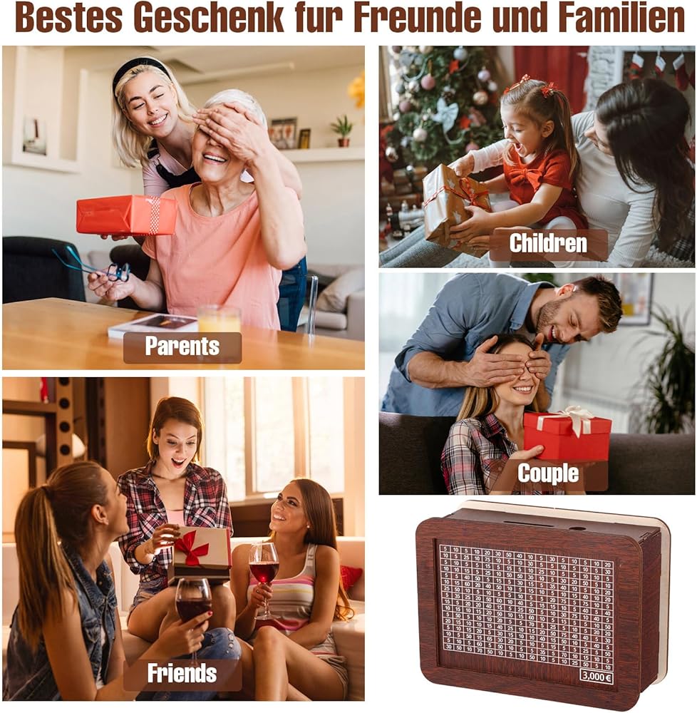 💵[Artistic and Decorativ] - The wooden savings jar not only helps you achieve your savings goals, but also adds an artistic and decorative touch to your home or office. As a wedding gift or birthday gift, a wooden savings jar also makes a great gift.