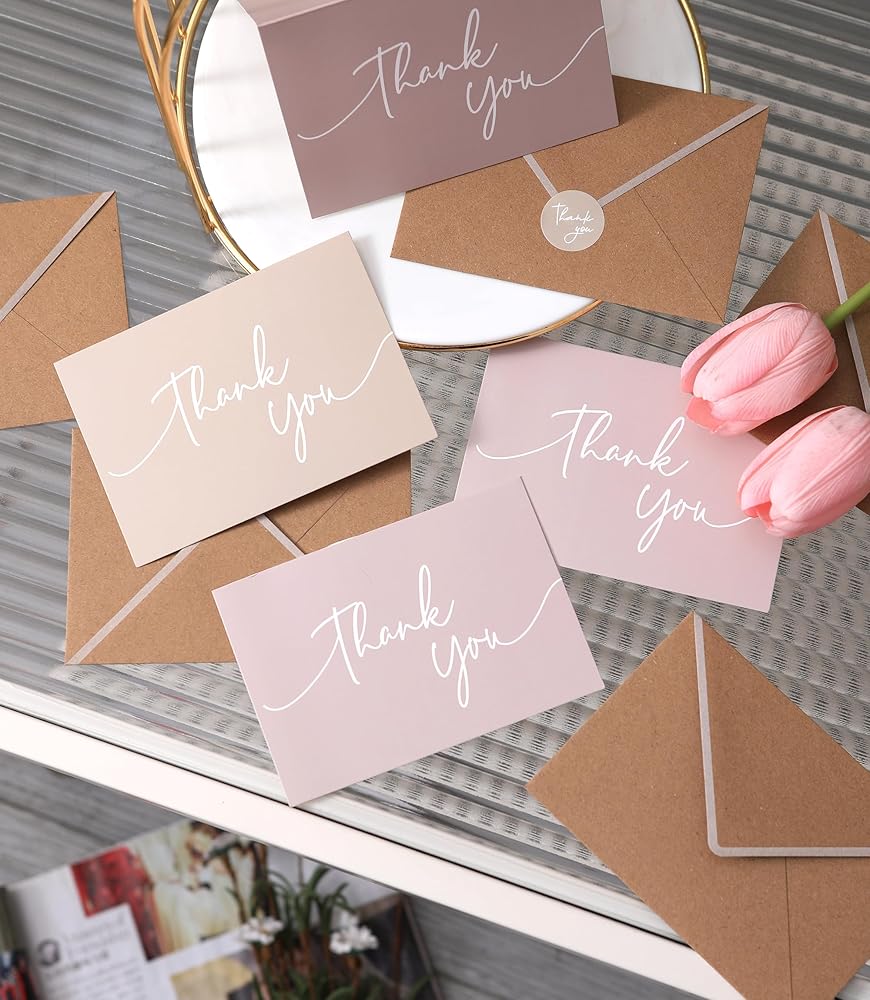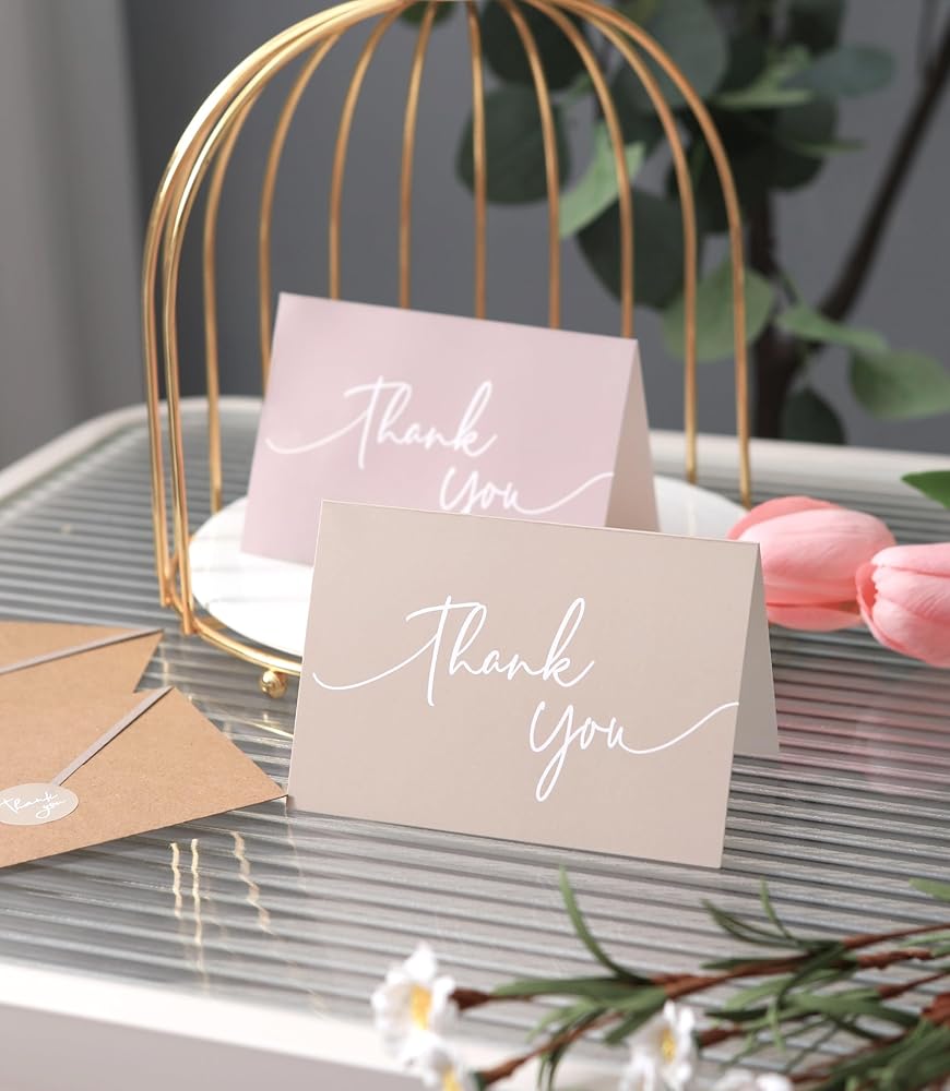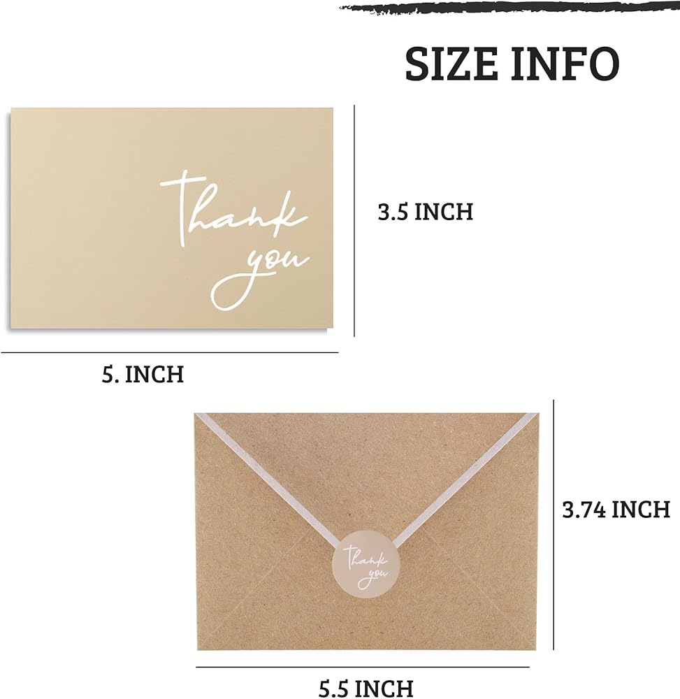 Winoo Design 100 PK Bulk Thank You Cards with Envelopes - 5x3.5 Inches Baby Shower Thank You Cards Wedding Personalized Thank You Notes for Bridal Shower Small Business Graduation Birthday