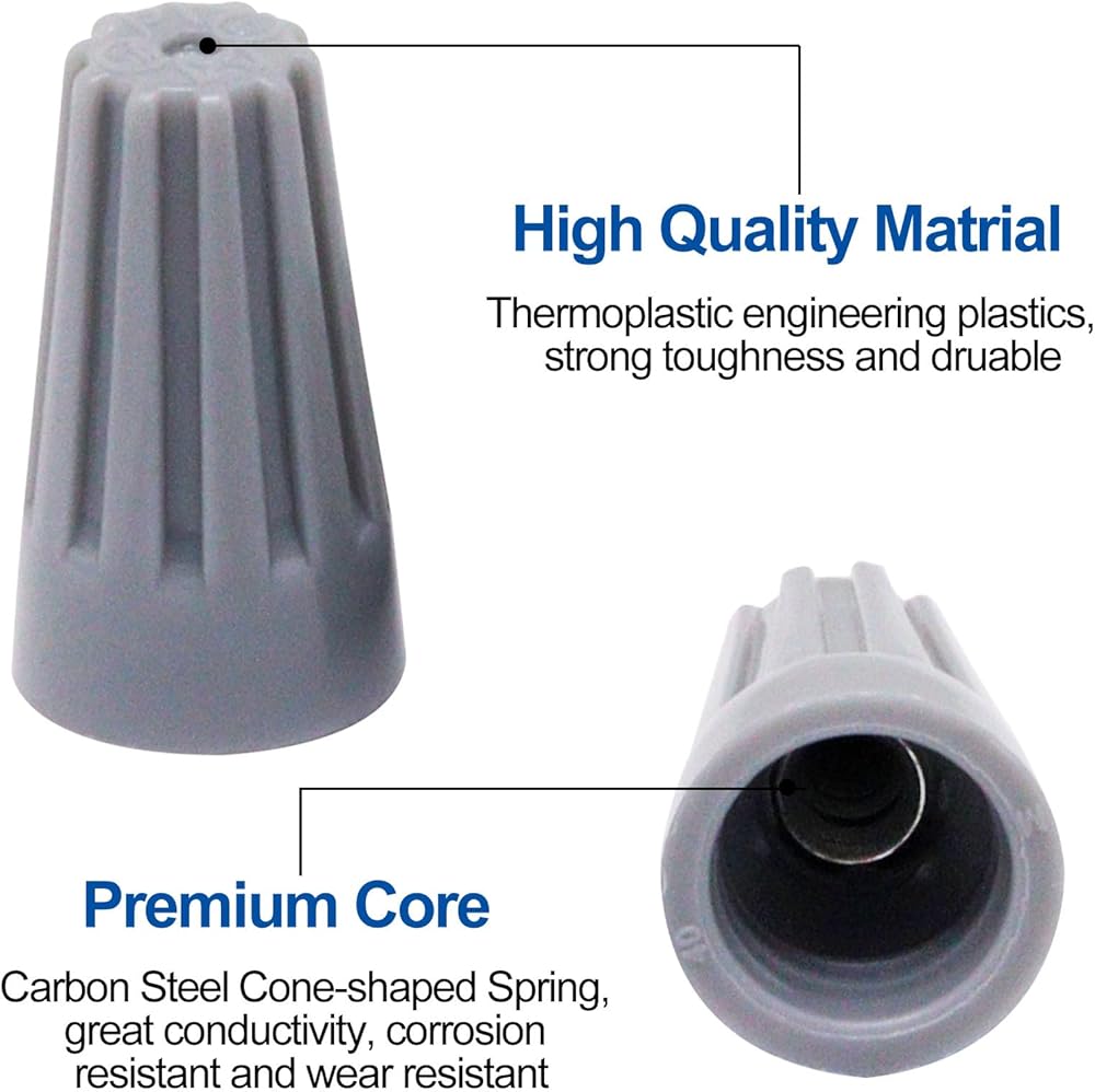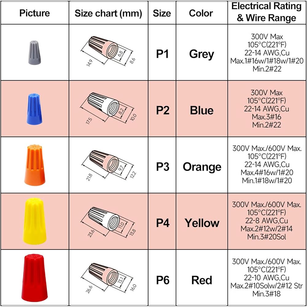 Strong Spring: The spring of the wire nut is made of galvanized carbon steel material, greatly ensuring the connection stable and preventing the electric wire from falling off. The metal spring of electrical wire connectors provide strong wiring and good conductivity!
