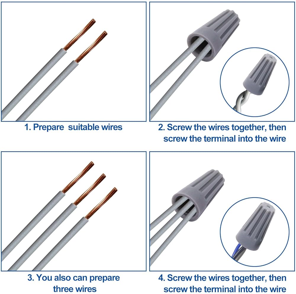 Easy and Quick to Use: The wirenuts are perfect to connect wries without soldering, just insert the stripped conductors into the wire cap, then screw the terminal into the wire.