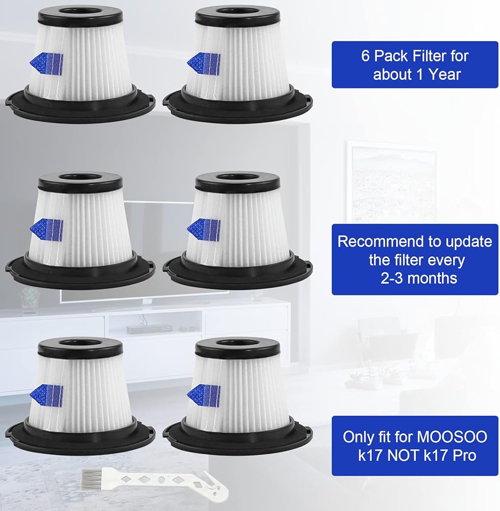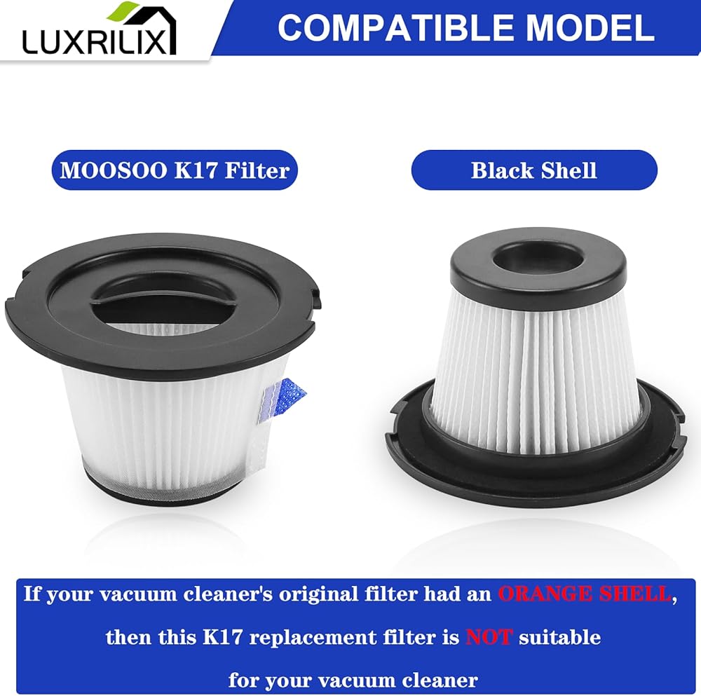 لوكسريلكس فلاتر مكنسة كهربائية بديلة من هيبا، متوافقة مع مكنسة موسو K17 اللاسلكية (6 عبوات من فلتر هيبا و6 قطع من مصفاة الشاشة)