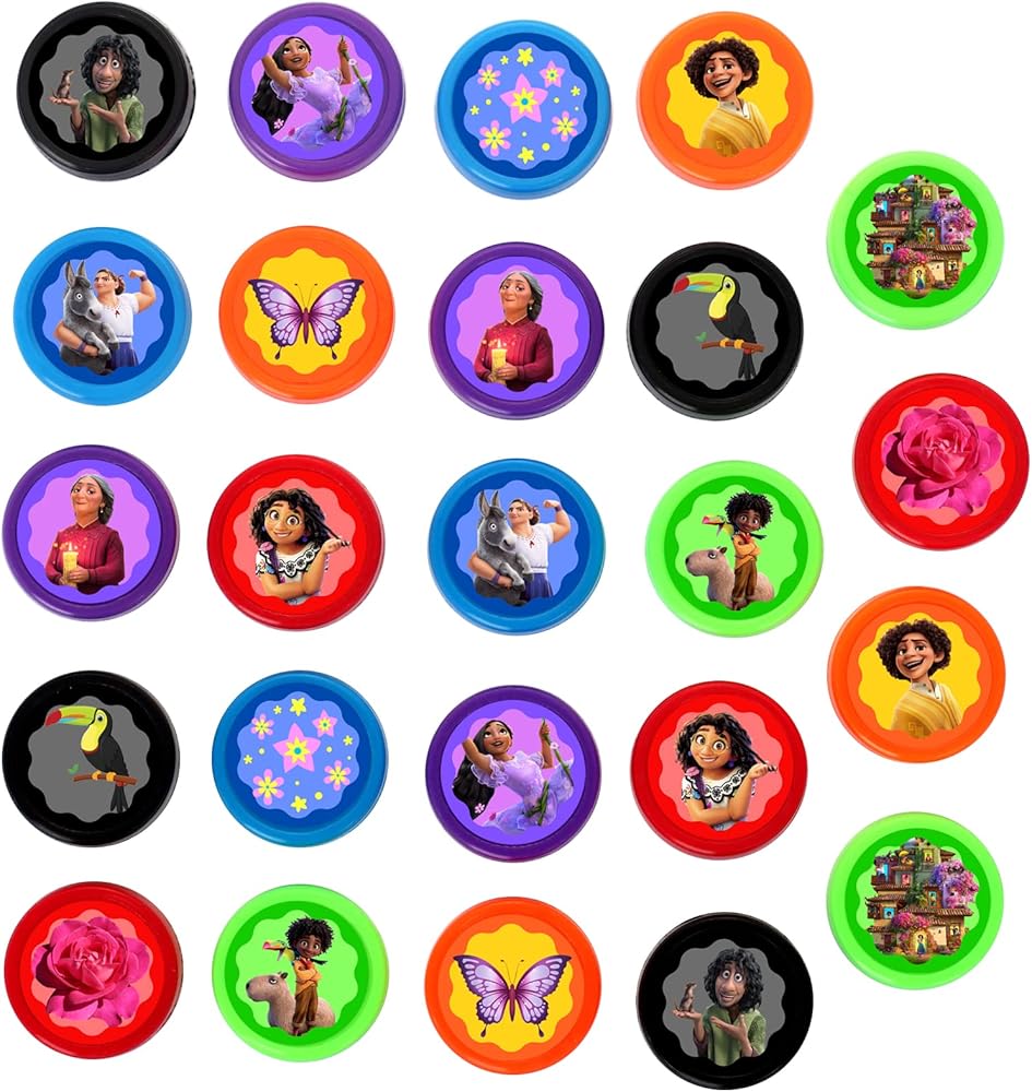 【Package Includes】 24Pcs Encanto Themed Stampers with 12 DIFFERENT designs and colors, each stampers measures 1.5 inches tall, 1 inch in diameter.