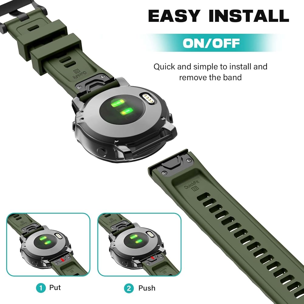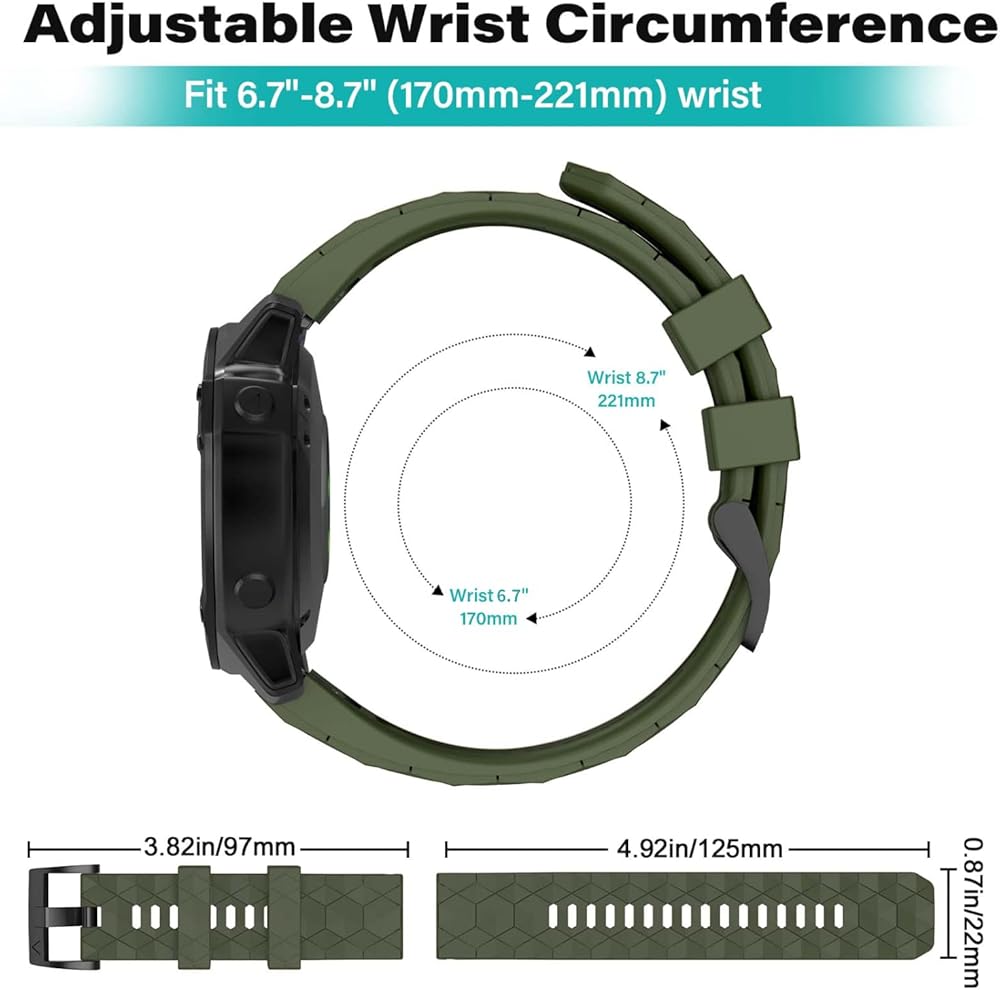 توافق مثالي: يتوافق سوار السيليكون هذا مع جميع موديلات Garmin Watch 22 مم مثل Garmin Fenix 5، Fenix 5 Plus، Epix (Gen 2)، Forerunner 935، Forerunner 945، Approach S60، Quatix 5، Quatix 5 Sapphire، Garmin Instinct، D2 Delta و Fenix 6 و Fenix 6 Pro و Sapphire Editions و Fenix 7 و Fenix 7 Solar و Fenix 7 Sapphire Solar.