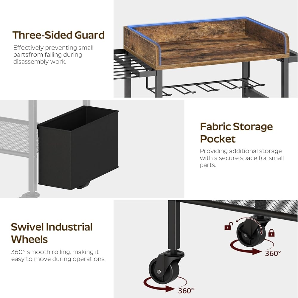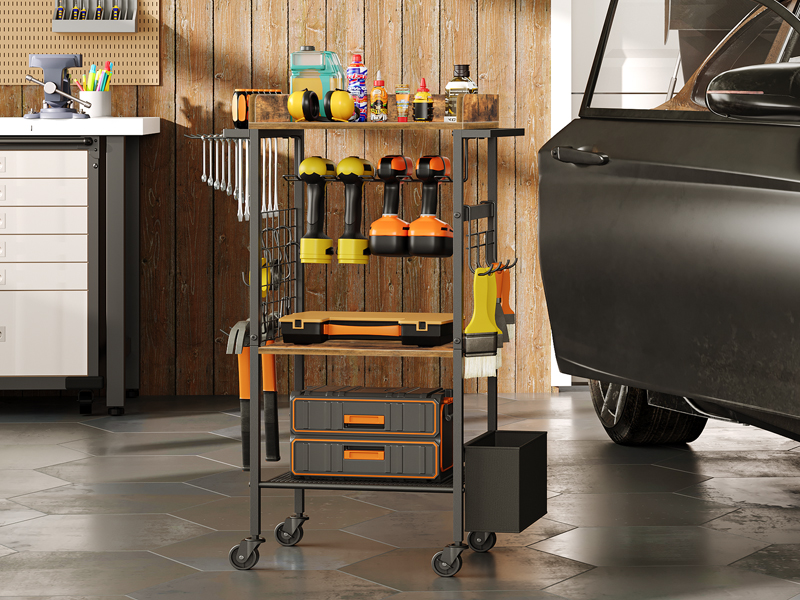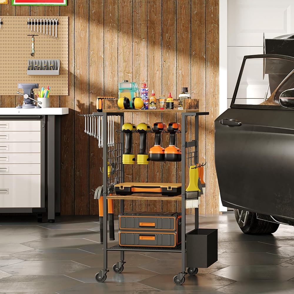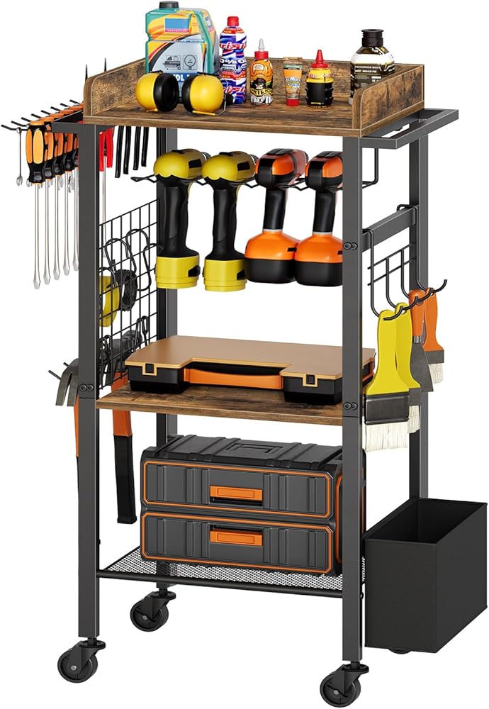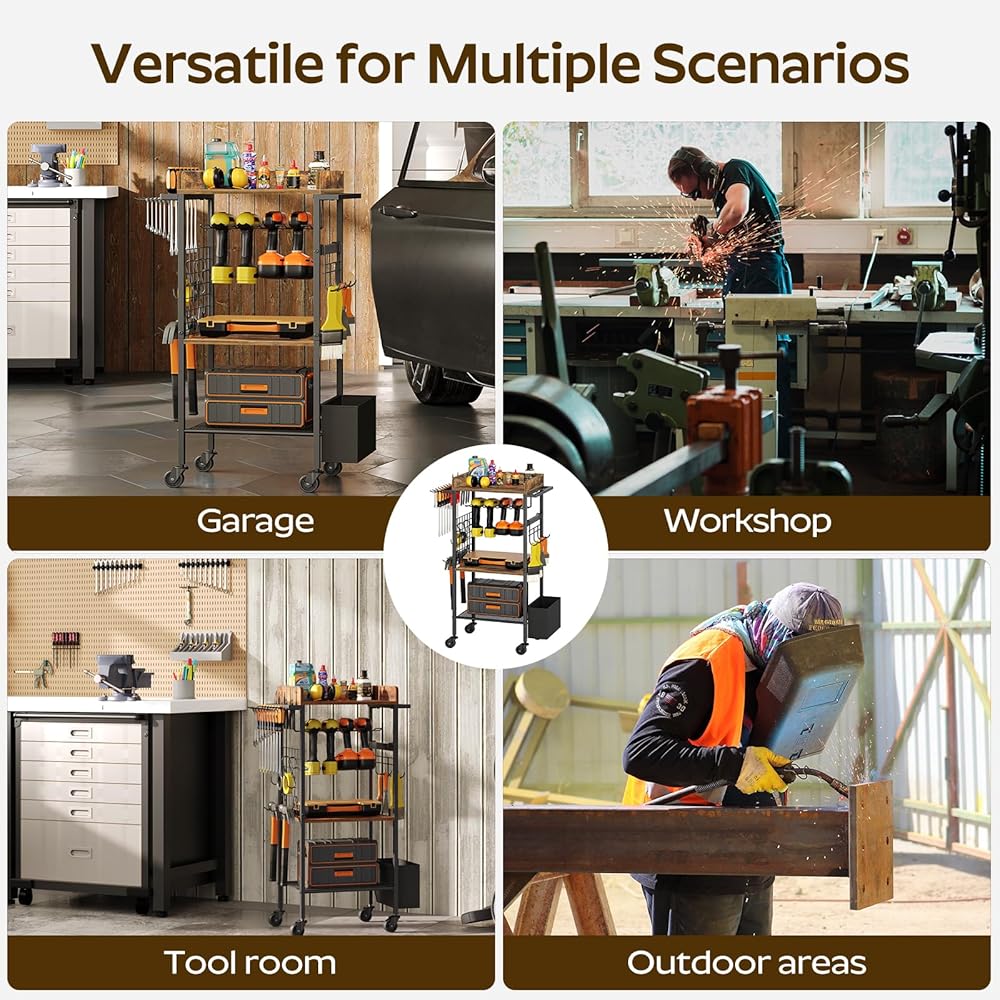 حامل مثقاب عالي الجودة: مصنوعة من ألواح فاخرة، تتميز عربة تنظيم الأدوات الكهربائية هذه بسطح أملس ومقاوم للتشوه. يضمن الإطار القوي والعجلات الصناعية سعة تحميل ممتازة