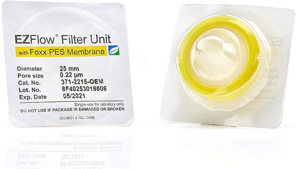 EZFlow 13mm, 25mm, and 33mm sample prep syringe filters are designed for aqueous and organic solution samples. The sample prep syringe filters are used for clarification and particle removal from samples before instrumental analysis such as HPLC, IC, and GC. These syringe filters are available in a variety of filter membrane materials, offered in 0.2µm or 0.45µm pore sizes. The filter membranes are reinforced with polypropylene housing with a female Luer-lok inlet and a male Luer slip outlet. All materials comply with USP Class VI Standards.