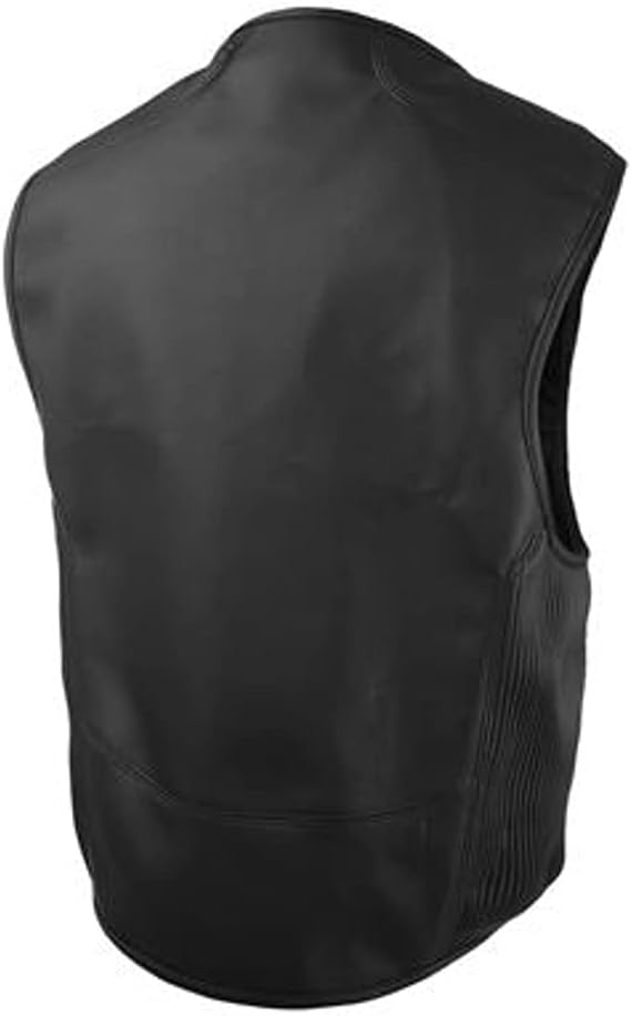 High abrasion-resistant manufactured PU leather Accordion stitched side flex panels Drop tail and over-jacket rider fit Insulated quilted liner Back protector pocket for CE spine protection (sold separately).