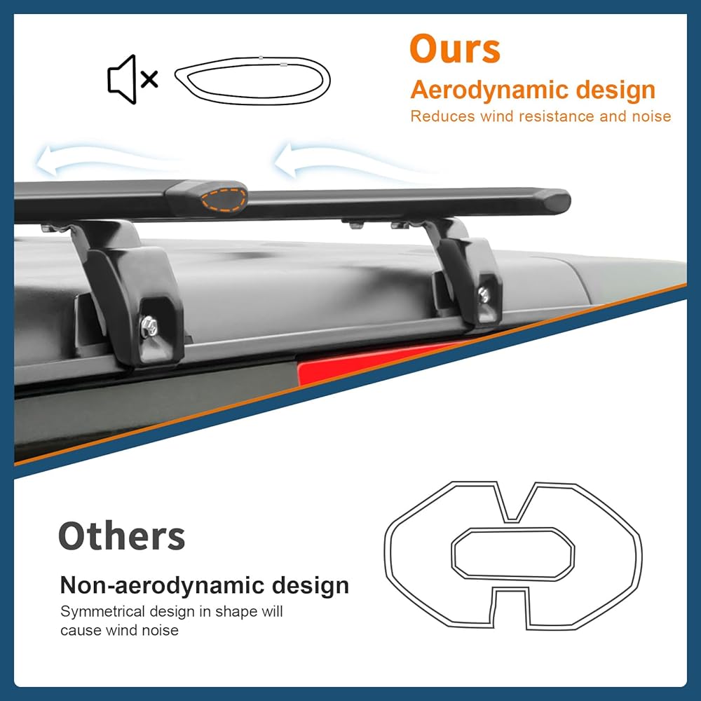 【ضوضاء رياح أقل 】تصميم بسيط وانسيابي يجعلها فعالة في تقليل ضوضاء الرياح عند القيادة بسرعة عالية. عارضة عالية القوة وخفيفة الوزن مصنوعة من ألومنيوم الطائرات، مما يوفر تركيبًا بسيطًا وسهلاً على سقف سيارتك.