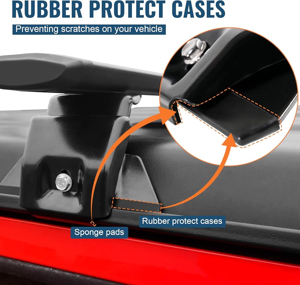 【سهلة التركيب】تم ترقية هيكل القدم الأساسية لتبسيط خطوات التثبيت. نسيم مطلق للتثبيت ويناسب مثل القفازات. سيوفر الاتجاه السهل + الملصق الواضح الموجود على المنتج مساعدة كبيرة لمعرفة كيفية تثبيته. تأتي العبوة مع زوج من القضبان المتقاطعة وأربع قواعد تثبيت ومسامير وقطع غيار وأدوات تركيب وتعليمات.