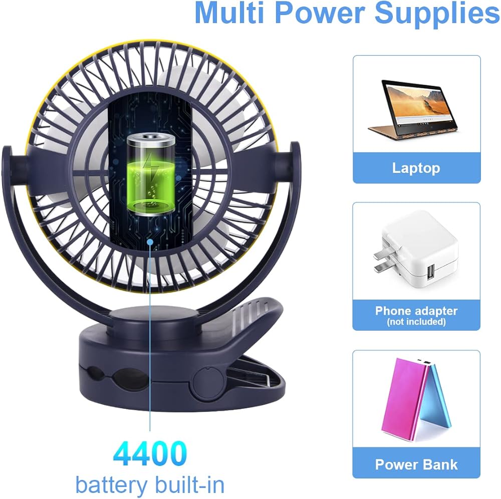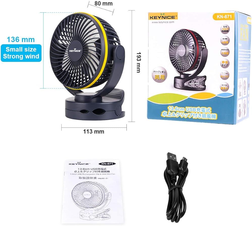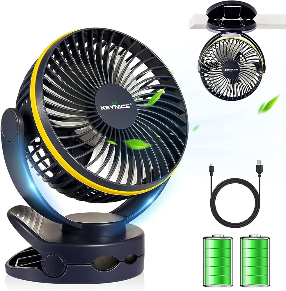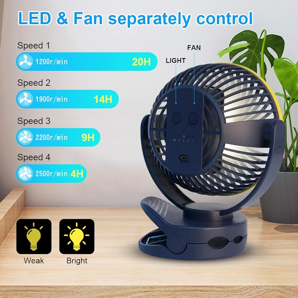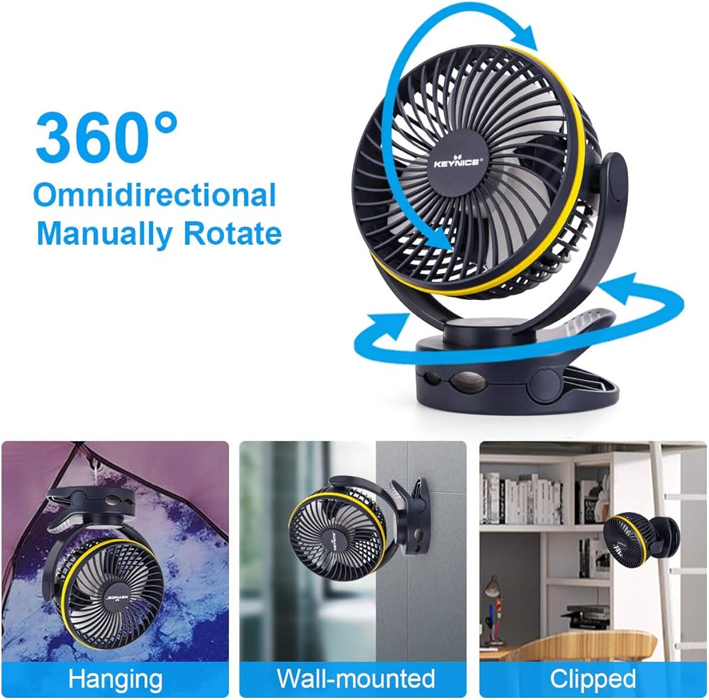 مروحة مشبك KEYNICE مع ضوء ليلي، مروحة مكتب USB مع بطارية قابلة لإعادة الشحن، مروحة تعمل بالبطارية 4 سرعات، مروحة معلقة للتخييم في الهواء الطلق، طوارئ الأعاصير، مراوح تبريد شخصية للمكتب والمنزل
