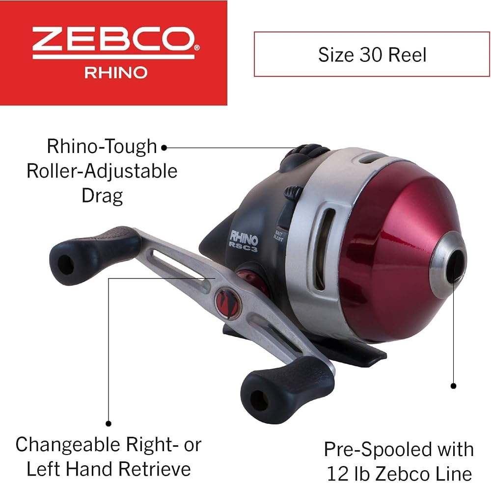 سهلة الاستخدام: بكرة الصيد Zebco Rhino Spincast هي بكرة بحجم 30 مصممة مع زر إبهام ناعم الملمس وأغطية من الفولاذ المقاوم للصدأ التي تكون دائمًا في عنصرها. إنها البكرة الوحيدة التي يمكنك الوصول إليها عندما تصطاد من أجل معركة حياتك