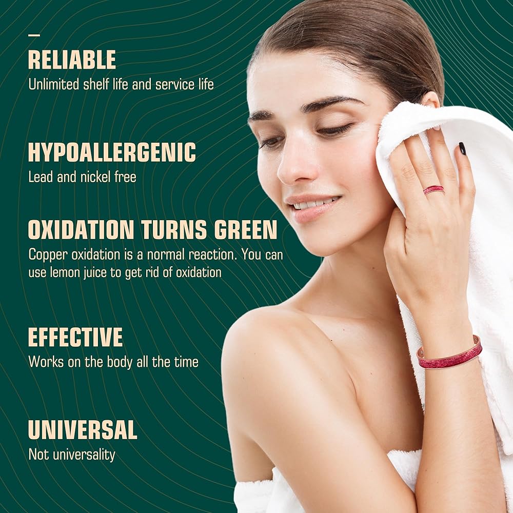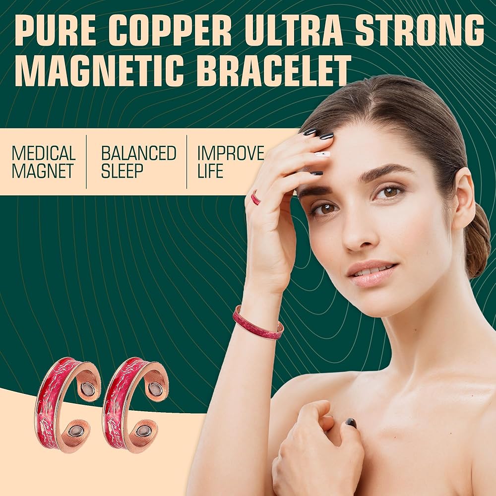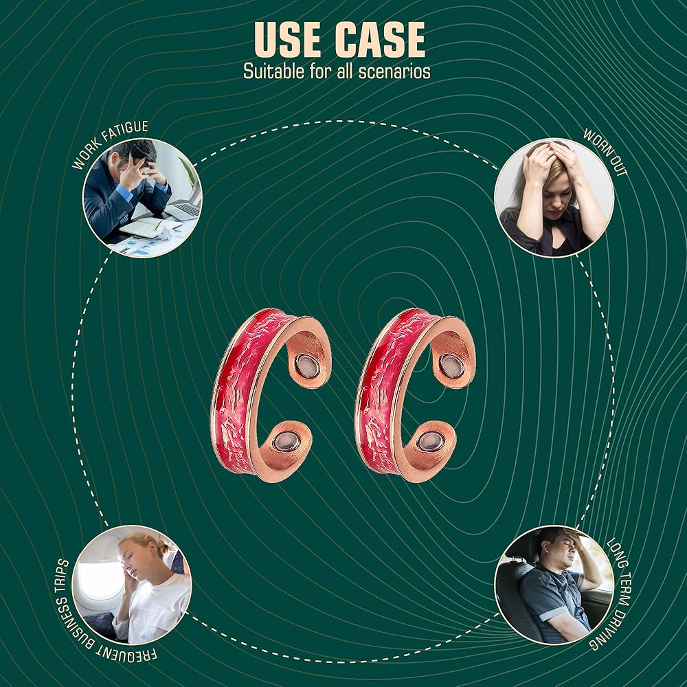 [حلقات العلاج المغناطيسي] - مصنوعة من النحاس الصلب النقي بنسبة 99.99% مع قطعتين من مغناطيس النيوديميوم 3500 غاوس، والتي تساعد على تعزيز الدورة الدموية لتحسين عملية التمثيل الغذائي للمواد في الجسم، وتخفيف التعب، وتوازن النوم والفوائد الصحية الأخرى.