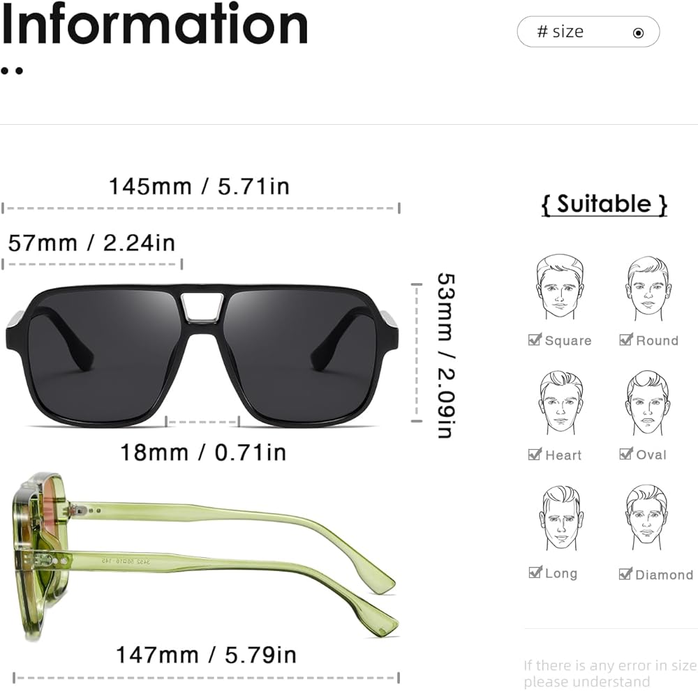 • تصميم KIMORN Vision VINTAGE - ليس فقط التصميم البسيط والمدمج يجعل الإطار السميك يبدو رقيقًا للغاية، ولكن أيضًا الإطار المستطيل يجعل المظهر العام للنظارات الشمسية أكثر رجعية.