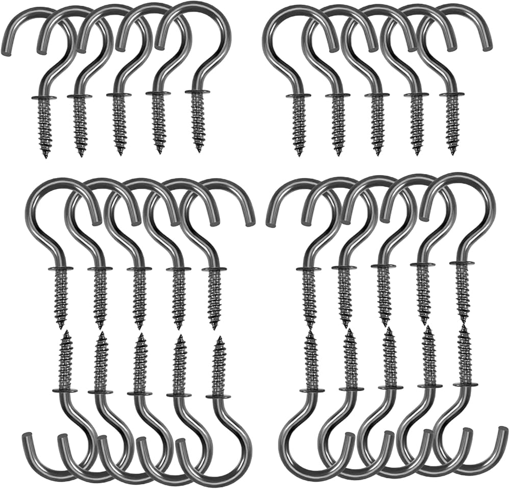 【Advantage】Sharp stainless steel screw end can be easily mounted into wood, non-isosceles triangle special thread, pointed and easy to screw into the wood or wall. The surface of screw hooks are electrolysis treatment to prevent rusting.