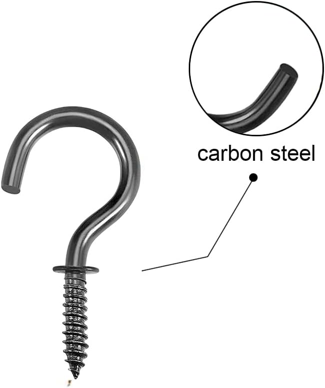 50 Pcs Ceiling Hooks Screw in Hooks Metal Cup Hooks for Wood Wall Ceiling Screw in Hooks for Hanging Key Jewelry Black 1 inch