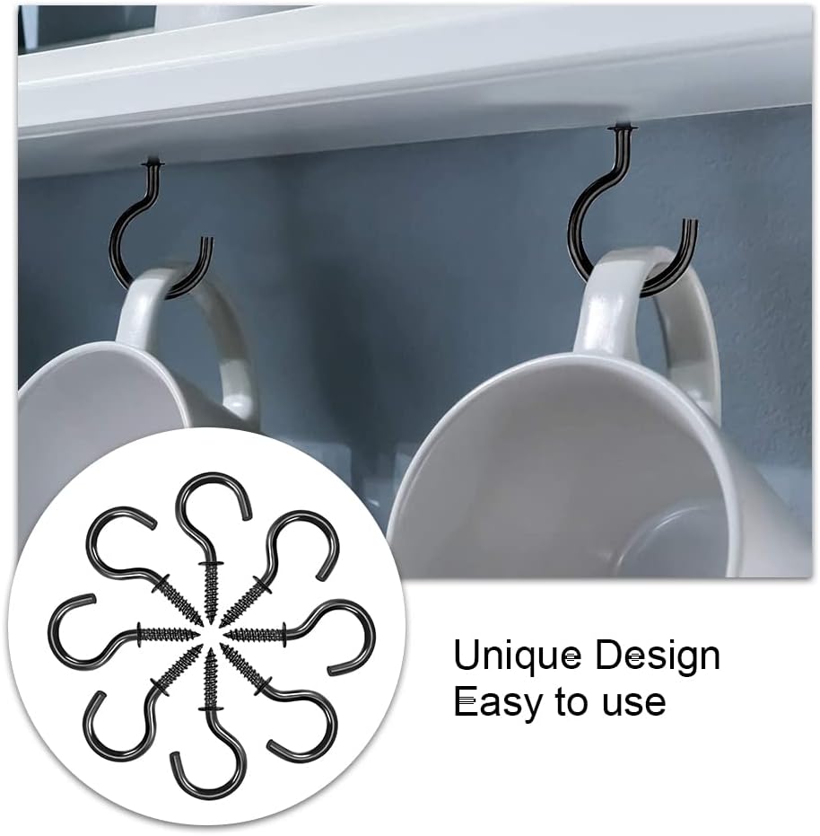 【Package and Size】Cup hooks 50 Pcs metal hooks(Black). 1 inch metal hook. The total length is approx 1.46in/3.7cm. Suitable for many occasions.