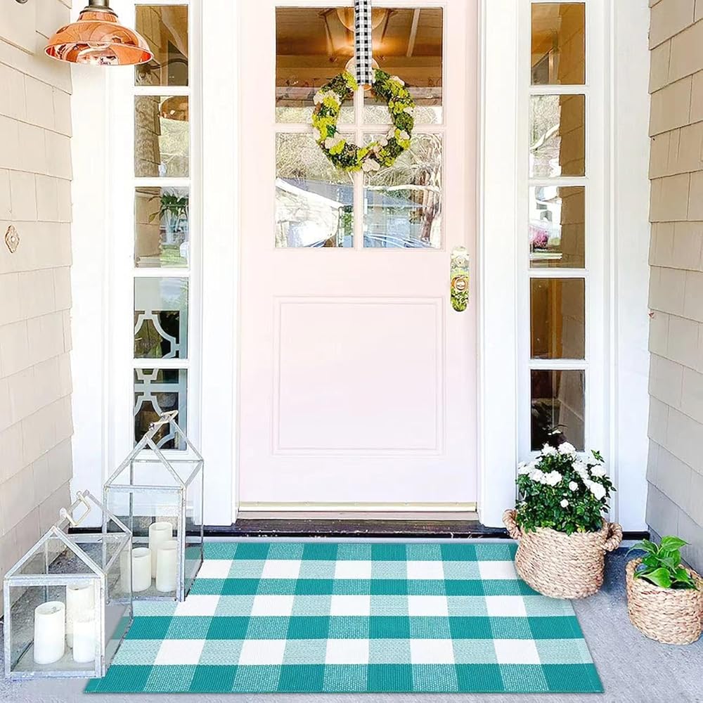 بفضل الحجم المثالي الذي يبلغ 28 × 43 بوصة، تتناسب السجادة المنقوشة باللونين الأخضر والأبيض مع سجادة الترحيب بشكل مثالي لتشكل سجادة باب مزدوجة تمثل ديكورًا مثاليًا للباب الأمامي الربيعي.