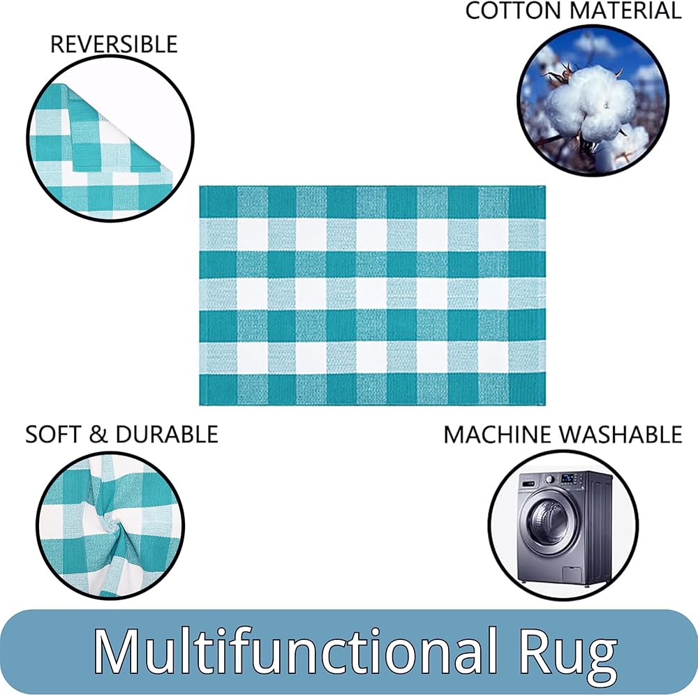 سجاد الجاموس منقوشة في الهواء الطلق، 3'x5' الأزرق والأبيض متقلب منطقة داخلية في الهواء الطلق البساط، طبقات البساط لباب الترحيب حصيرة، قابل للغسل القطن المنسوجة مزرعة حصيرة لفصل الربيع عيد الفصح ديكور الشرفة الأمامية