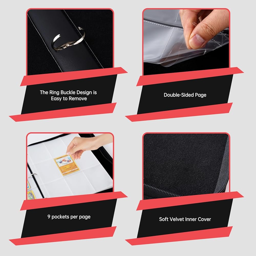 Large capacity card holder: The card holder has 50 built-in detachable sleeves for a total of 900 cards (both sides of the card holder can be stored), allowing you to easily organize and memory cards, and transparent pockets on each page to see your cards more clearly.
