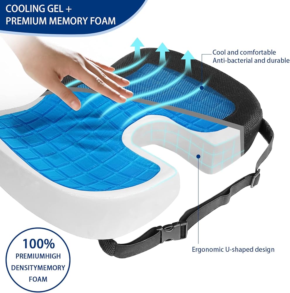 【قلب جل التبريد】وسادة المقعد المعززة بالجل مع قلب جل التبريد الذي يستخدم رغوة الذاكرة عالية الجودة وعالية الكثافة وتصميم طبقة الجل لتوفير دعم قوي. يعمل تصميم الجل على تبريد المقعد على الفور ويمنع تراكم الحرارة بعد الجلوس لفترة طويلة. تعتبر طبقة الجل هذه مفيدة بشكل خاص خلال فصل الصيف الحار، مما يبقيك منتعشًا ومرتاحًا أثناء الجلوس.