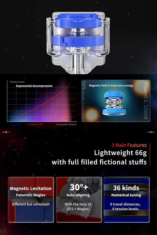 أدوات مغناطيسية مبتكرة - يستخدم GAN12 Maglev مغناطيسين طاردين لاستبدال الزنبركات التقليدية ولكن يحاكي شعور الربيع. عندما يدور المكعب، فإن تنافر المغناطيسات يجعل مركز المكعب يتحرك دائمًا على مسافة معينة مما لا يشعر فقط بعدم احتكاك GES ولكنه يزيل أيضًا ضوضاء الربيع تمامًا! في الحل الأول، سوف تهتف لأن استقرار ماجليف وعدم احتكاكه الشديد يجعلك تسرع.