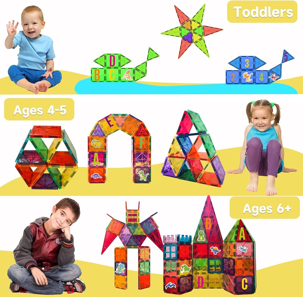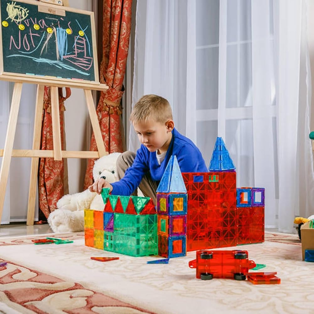 【Perfect Learning Toys Gifts】Magnetic tiles are the perfect tool for building, creating, and learning. A must-have for any preschool or kindergarten classroom, as they allow teachers to engage students in hands-on learning that is both fun and effective. It's a fantastic kids' toy for toddlers, preschoolers, and school-age children, even teen boys and girls like it. Perfect holiday kids toys gift for birthday, Children's day, Kindergarten Graduation Gifts, Christmas etc.