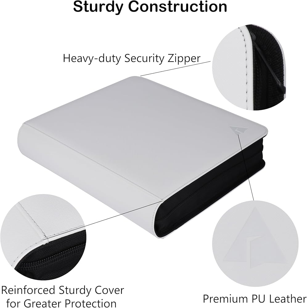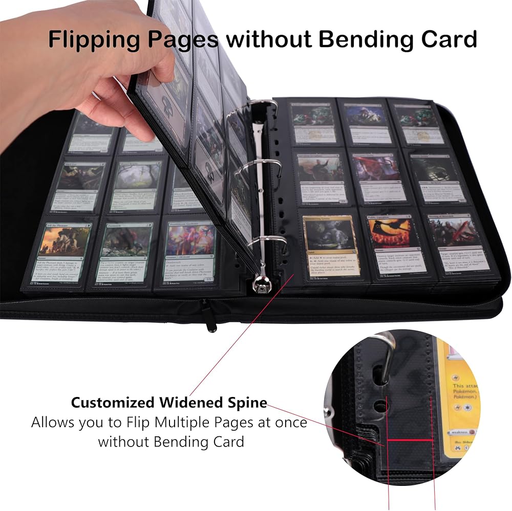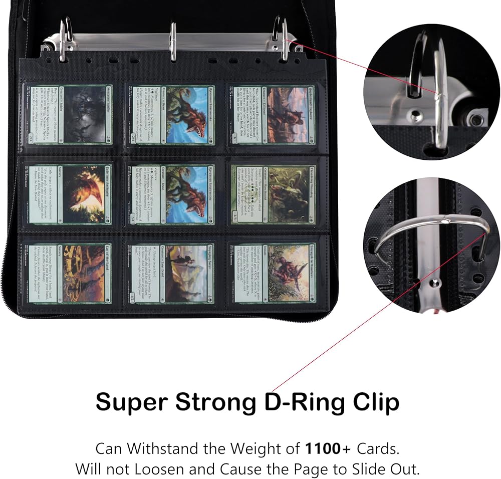 Metal D-Ring: Reinforced 3" metal D-ring for easy loading of pages, side loading design to prevent cards from easily falling out, along with a zippered closure for extra protection.