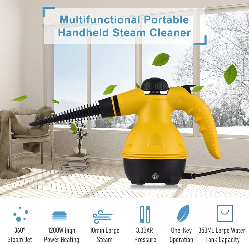منظف بخار مضغوط محمول باليد بقدرة 1200 واط من ايلجيلي، الة تنظيف بالبخار بالضغط بدرجة حرارة عالية مع 10 قطع ملحقات للمطبخ والاريكة والحمام ونوافذ السيارة