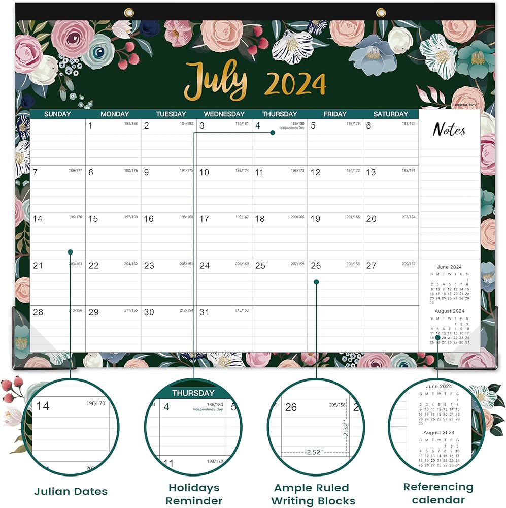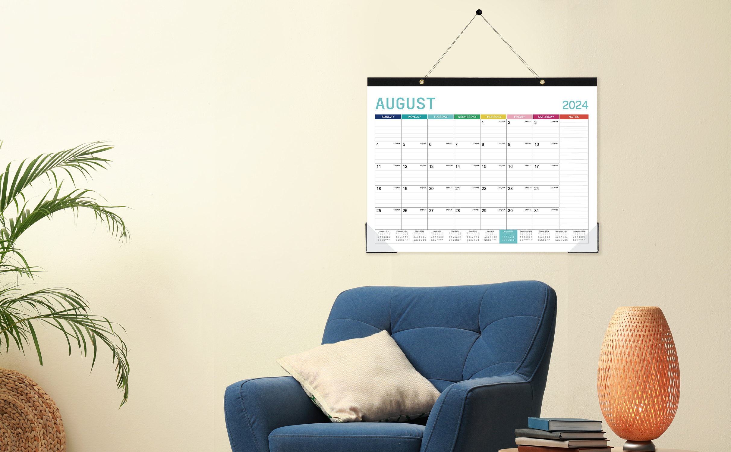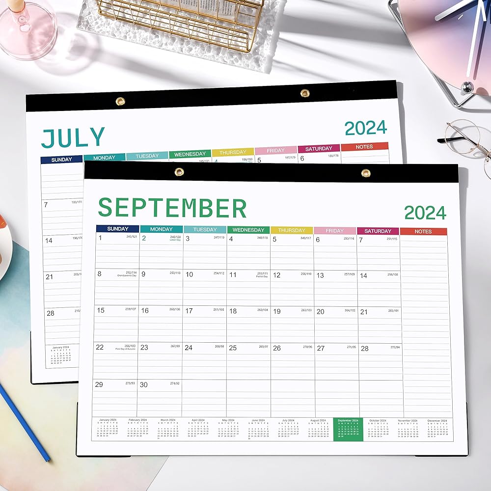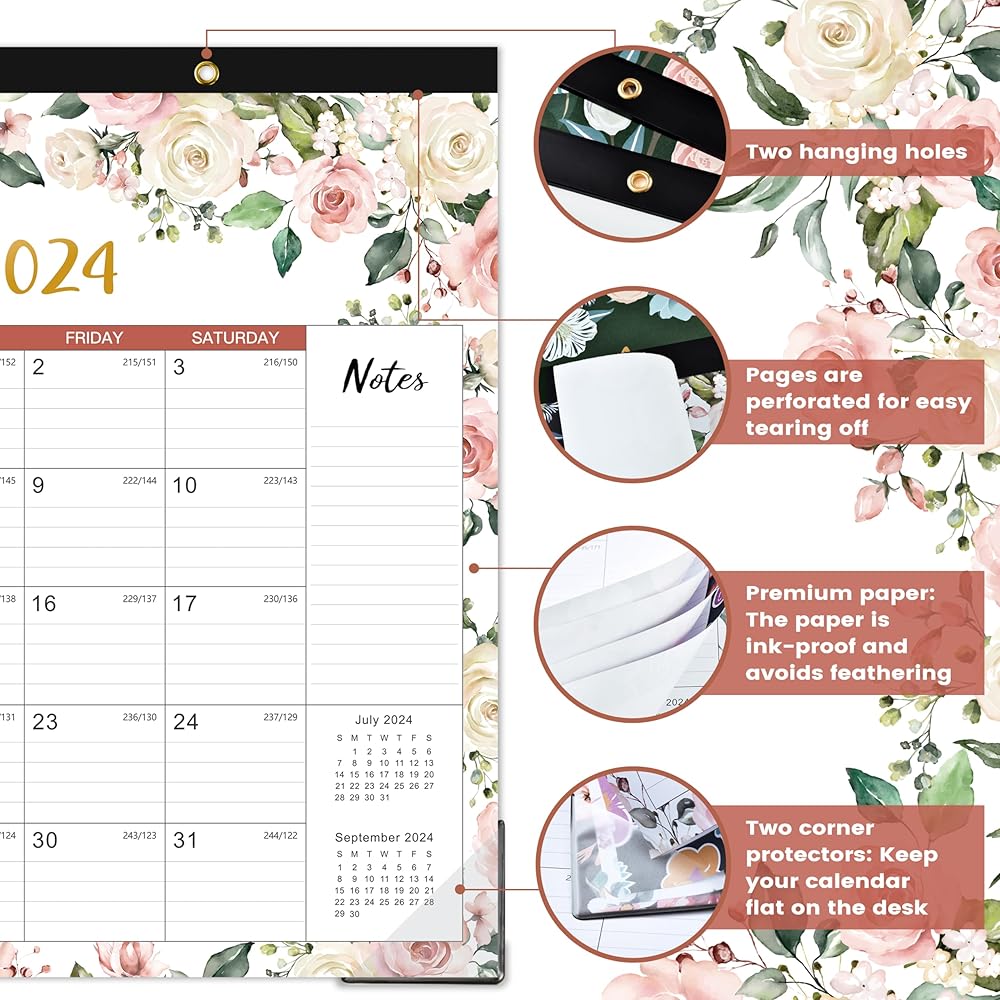 📖 ميزات 2 في 1 - 2 واقي زاوية شفاف وفتحات تعليق تجعله جيدًا للتعليق على الحائط. كما أنه يعمل كتقويم مكتبي 2023-2024 أو وسادة مكتب، وهي أداة رائعة للتخطيط طويل الأمد. زوايا شفافة تحافظ على الصفحات مسطحة على المكتب أو الحائط.