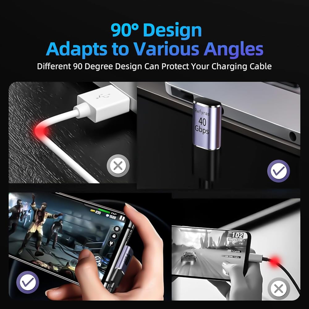 [90 degree right Angle design] The 90 degree adapter makes the cable have a suitable extension direction, which can avoid the wear of the cable and the input port of the device, and extend the service life.