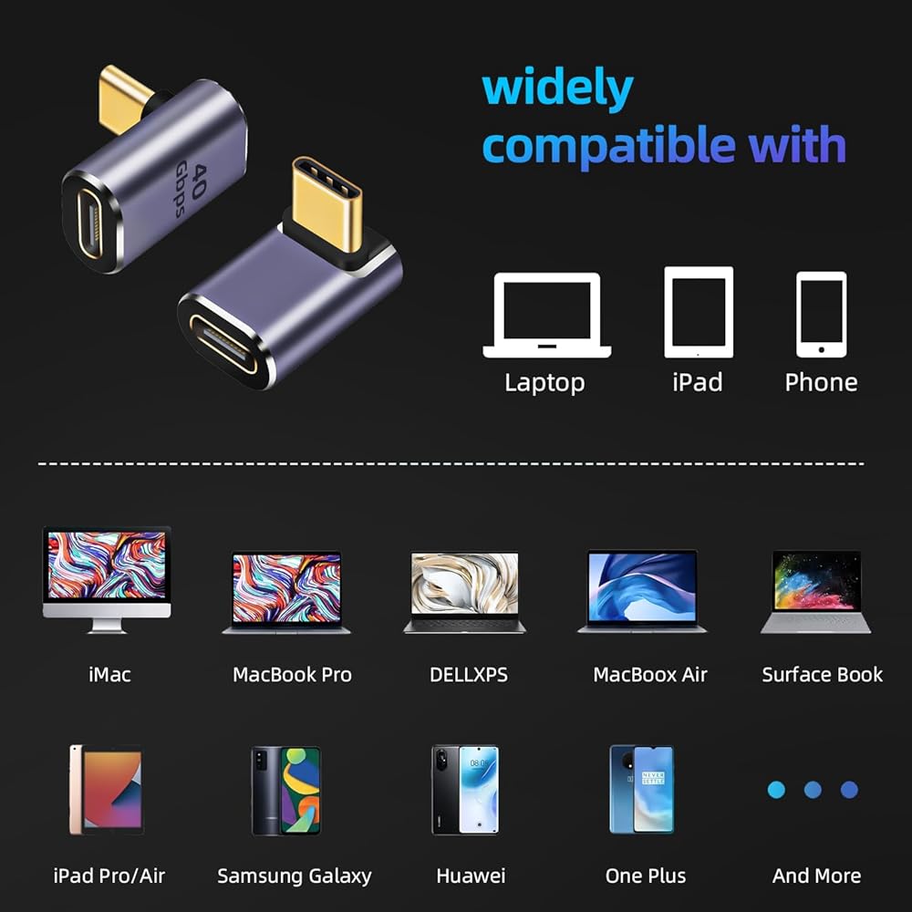 محول USB C 90 درجة 100 وات، 2 حزمة لأعلى وأسفل USB C 90 درجة محول موسع 8k@60 هرتز فيديو لـ Thunderbolt 4/3، متوافق مع سطح البخار والمحول وأجهزة الكمبيوتر المحمولة والأجهزة اللوحية والهواتف المحمولة