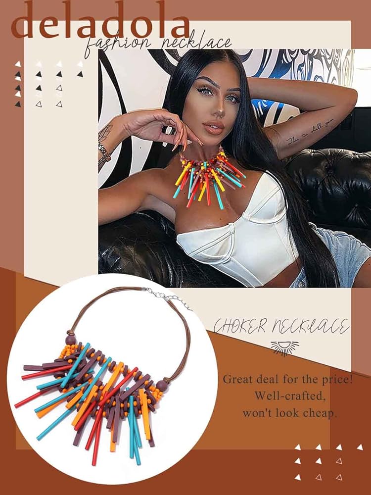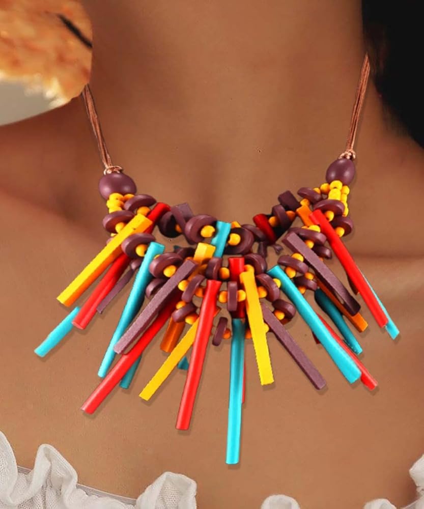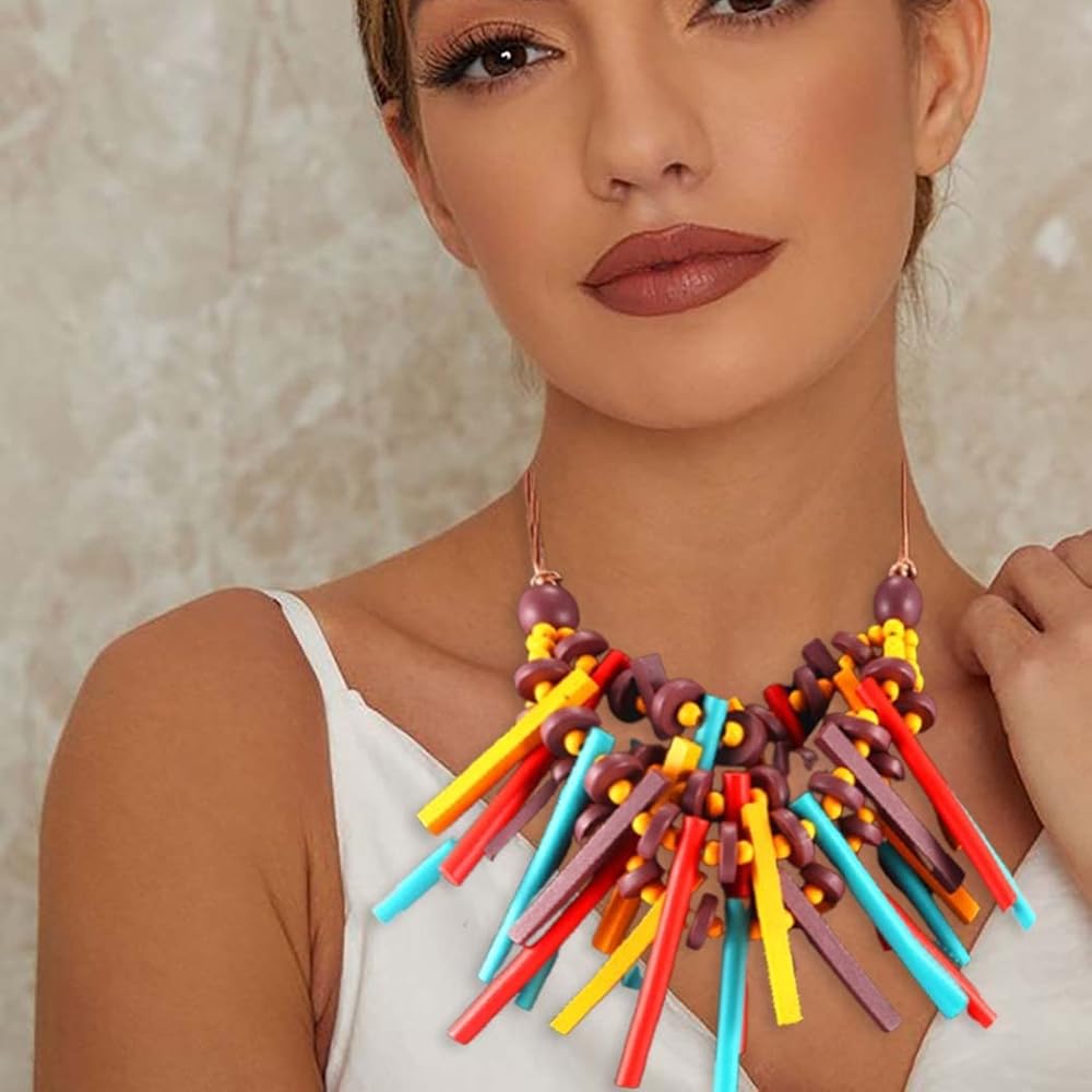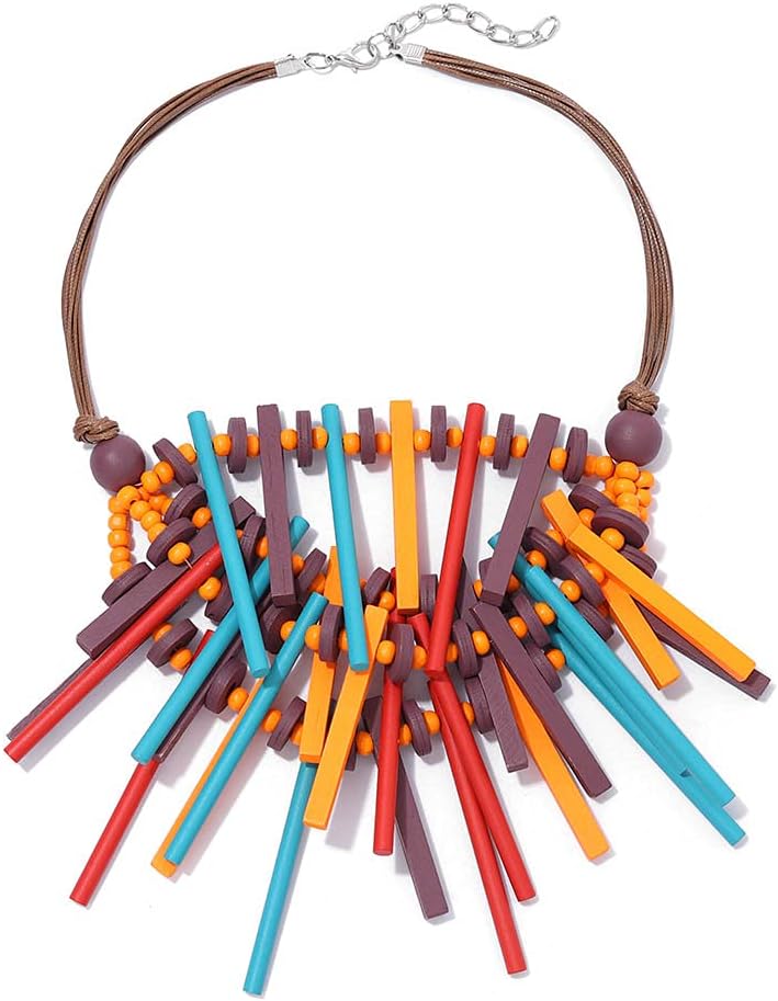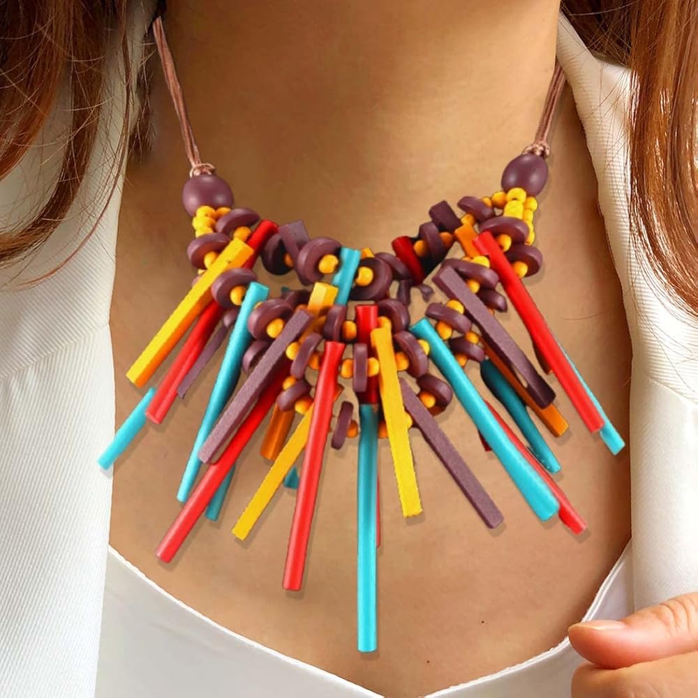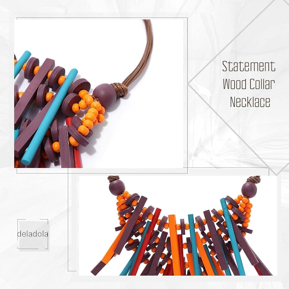 قلادة ديلادولا ذات الياقة الخشبية الملونة المصنوعة يدويًا، قلادات مريلة خشبية شرابة متعددة الألوان، إكسسوارات تنكرية للنساء