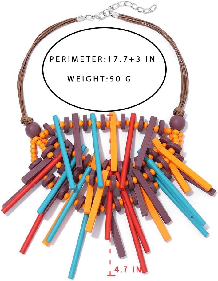 • تم تصميم قلادة بوهو الخشبية بطبقات متعددة، مع مجموعة متنوعة من الأشرطة الملونة المنسوجة معًا، مما يجعل ملابسك أكثر جاذبية وسحرًا.