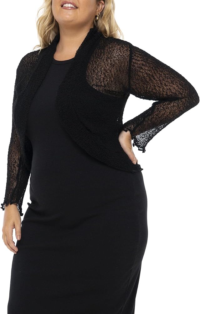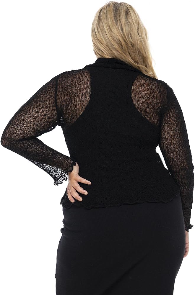 يمنح أي ملابس مظهرًا جديدًا. أضف بعض النجاح إلى القميص أو الفستان المفضل لديك. نسيج شبكي شفاف مثير يجعل هذه السترة القصيرة خفيفة الوزن للغاية. ارتدي هذه السترة متعددة الاستخدامات ذات الحجم الكبير مع قطعة أساسية في خزانة الملابس وVOILA! نظرة جديدة