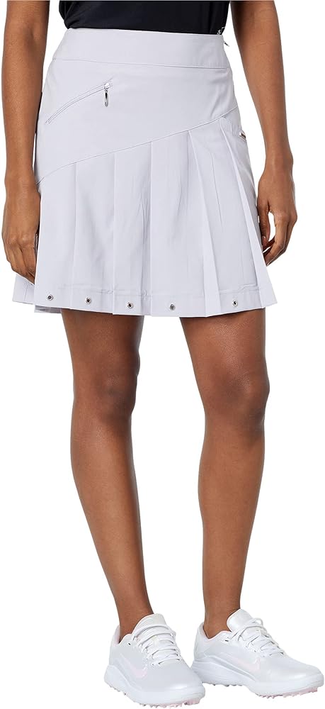 Look sleek and elegant wearing the chic and comfy Jamie Sadock 17.5" Skort Airwear wherever you head. Elasticized waistband. Hand pocket on front. Zippered pocket on the front. Welt pocket on the back. Above-the-knee length design. Snap-button detailing on the hem. Pleated design. Pull-on style. 87% polyester, 13% nylon. Machine wash, dry flat.