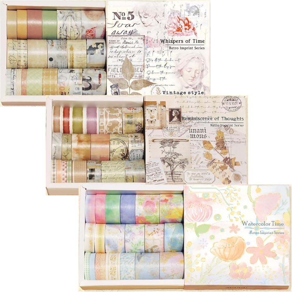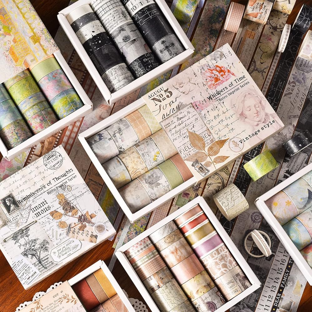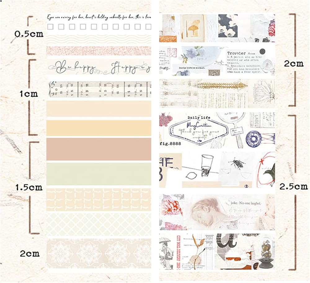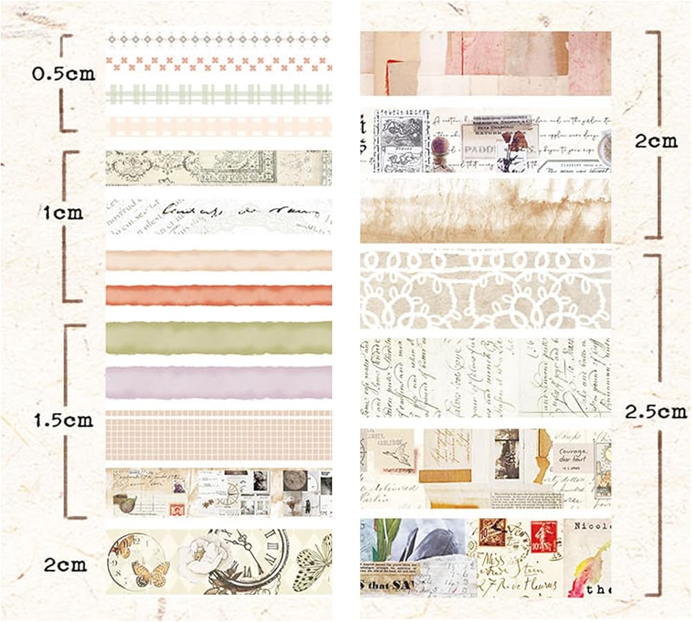 سحر عتيق متعدد الاستخدامات: اكتشف مجموعة واسعة من المواضيع والأنماط المثالية لأي مشروع أو مناسبة في مجموعة شريط واشي الخاصة بنا. من الأنماط الزهرية والهندسية الكلاسيكية إلى الزخارف القديمة والحديثة، فإن الخيارات الإبداعية لا حدود لها. ارفع مساعيك الفنية بسهولة وأضف لمسة من الأناقة على إبداعاتك. مجموعة الأشرطة ذات الطراز العتيق لدينا تتجاوز المألوف، وتتميز بتصميمات فريدة مثل الهياكل العظمية البشرية، والوظائف الرياضية، والصور المجمعة، ومسارات الكواكب، والرسوم التوضيحية النباتية، والجماليات الفيكتورية، وحتى الأنماط المستوحاة من القهوة. مثالية لإضافة لمسة من السحر الداكن أو القوطي إلى يومياتك ومجلاتك غير المرغوب فيها.