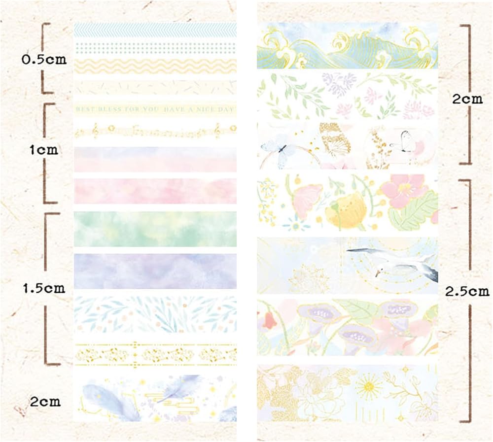 حرفية ممتازة: مصنوع من ورق واشي عالي الجودة، ويتميز الشريط الخاص بنا بمادة لاصقة آمنة وغير سامة تسمح بإعادة الوضع بسهولة دون ترك أي بقايا لزجة أو التسبب في ضرر. بفضل تقنية الطباعة الاستثنائية بأربعة ألوان، فإن كل التفاصيل الموجودة على الشريط واضحة بشكل استثنائي، والألوان زاهية بشكل ملحوظ. إن التزامنا بالجودة لا يضمن الحصول على منتج فائق الجودة فحسب، بل يضمن أيضًا الحصول على تأثير زخرفي مذهل.