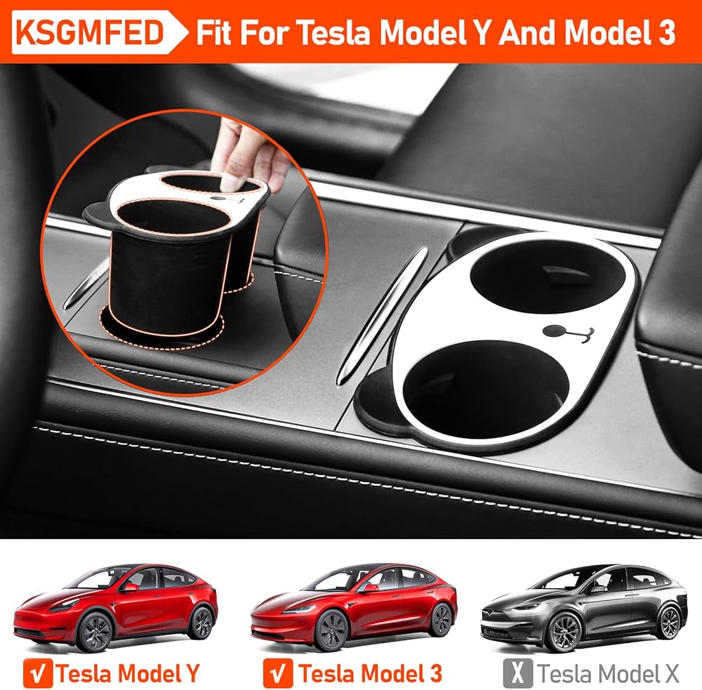 【ملاءمة مثالية】منظم حامل الأكواب الخاص بنا متوافق مع موديل 2023 2022 2021 Tesla Model 3 والطراز Y، مما يضمن ملاءمة آمنة في فتحة كوب الماء الأصلية في السيارة دون اهتزاز.