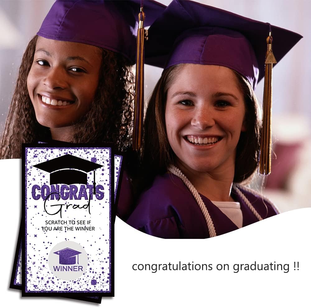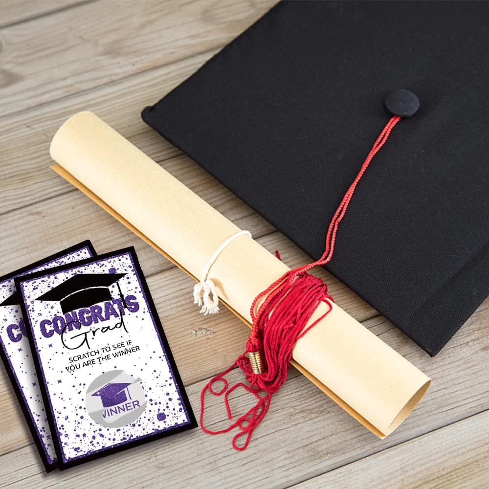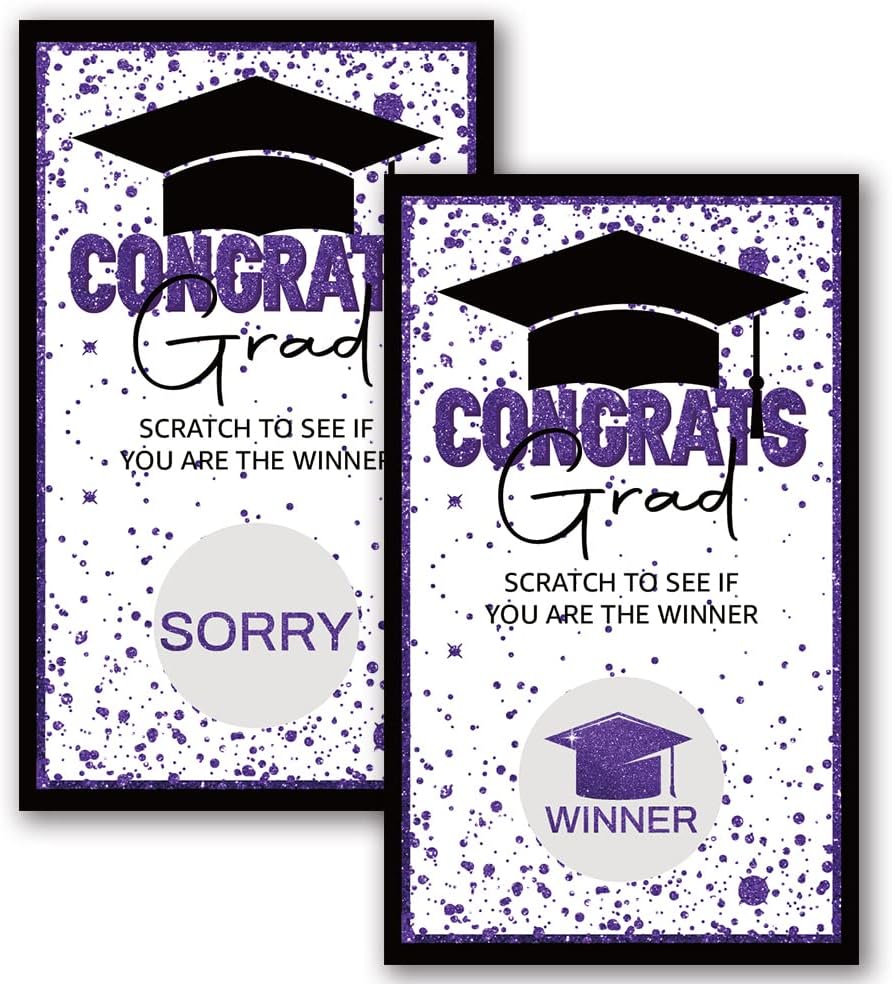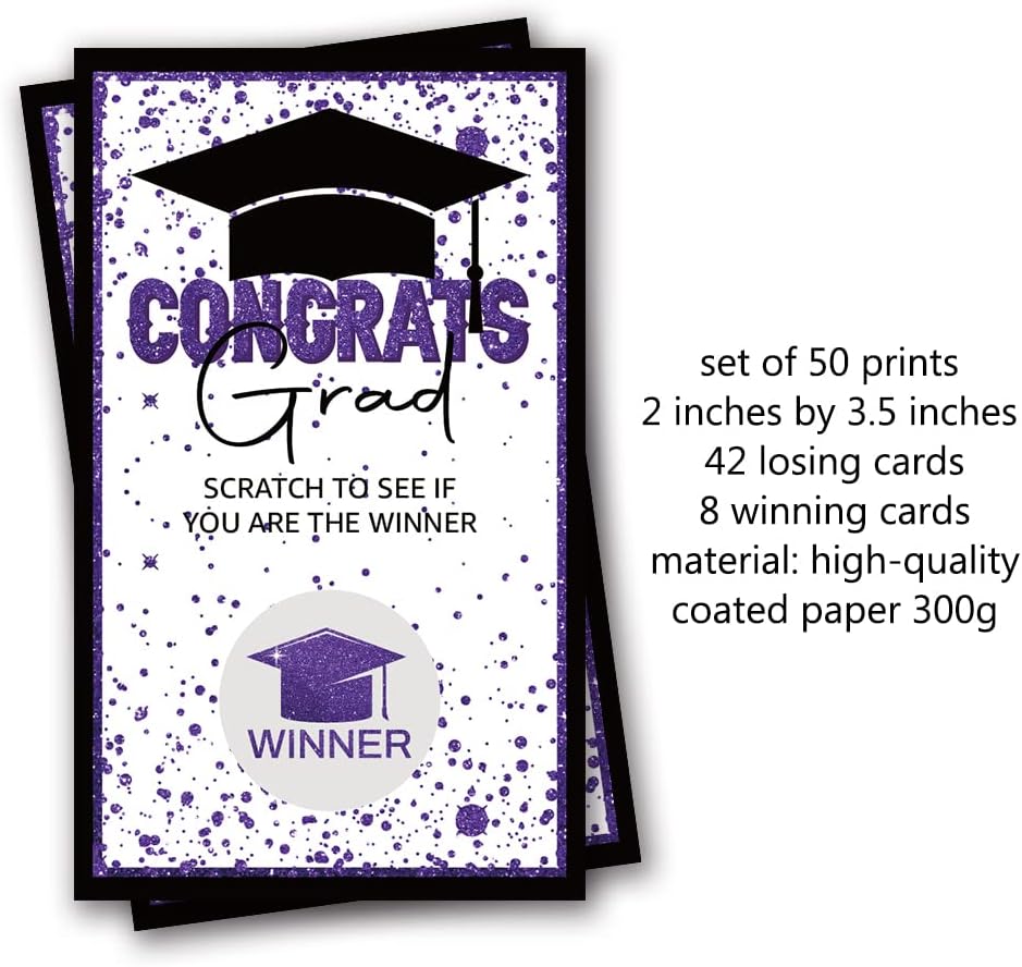 50 pcs graduation party scratch off game cards, 42 pcs Loser, 8 pcs Winner. You can used for university, college, law school, master's, grad school, med school, university graduation party. Scratch Off Game Cards are the best and handy for any function or event you can imagine. You can continue to browse other graduation scratch off cards in our store, there is always a design for you.