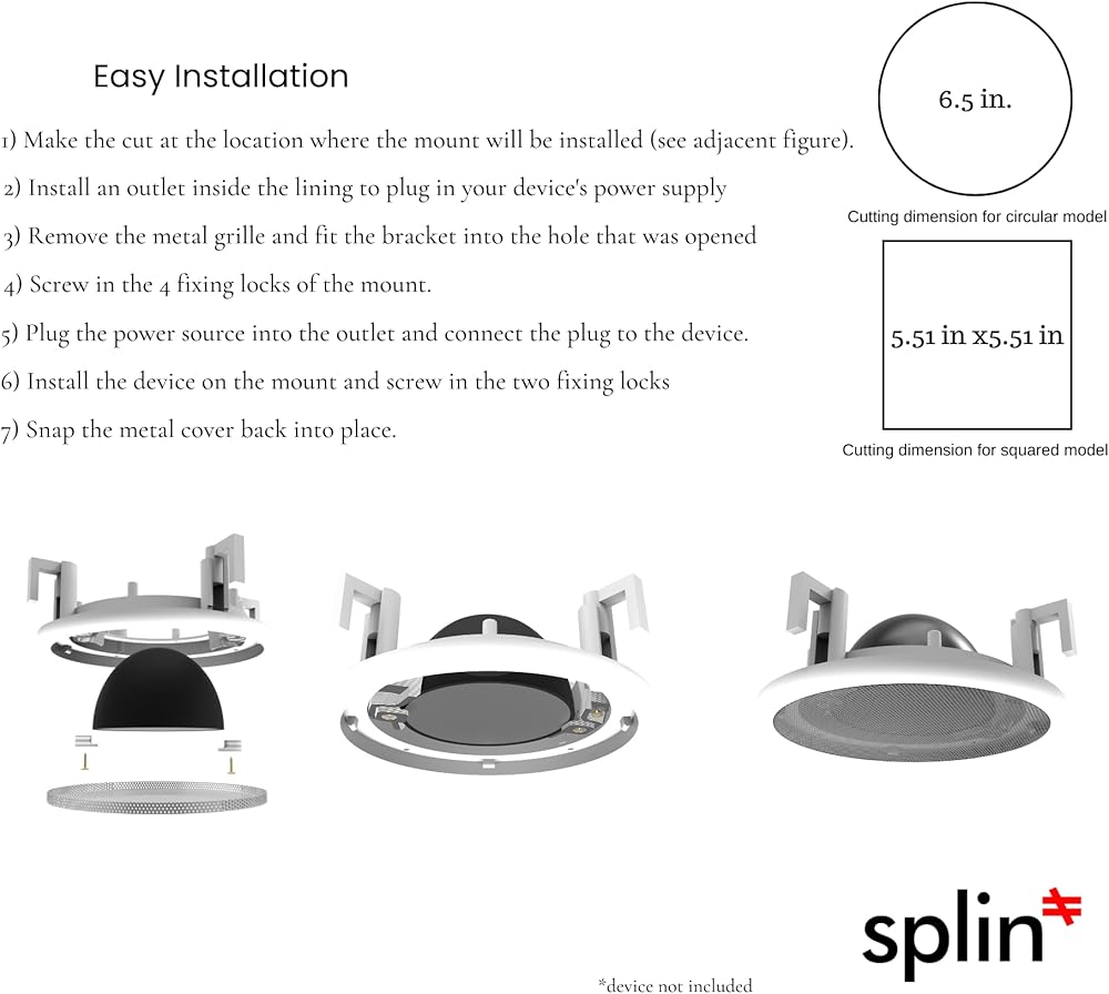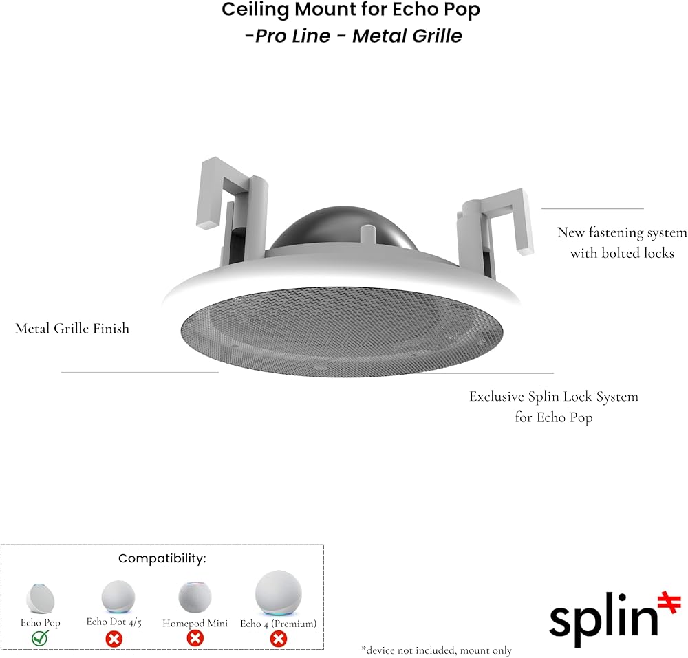حامل تثبيت مدمج بالسقف من سبلين متوافق مع مكبر الصوت الذكي Alexa Echo POP وAmazon ومكبرات صوت السقف مقاس 5 بوصات - Pro Line - الطراز الكلاسيكي المدمج (أبيض) - شواية معدنية