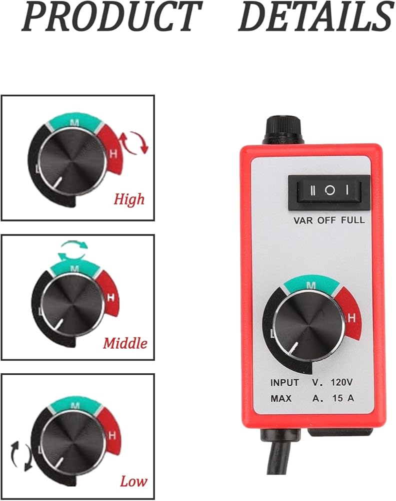 EASY TO OPERATE -- Direct plug-in design (US 3 Hole Plug) does not require wiring operation. At the same time, the aluminum plate on the back has a hanging buckle, which is convenient to carry. The knob indicates stepless speed change, which is simple and clear.